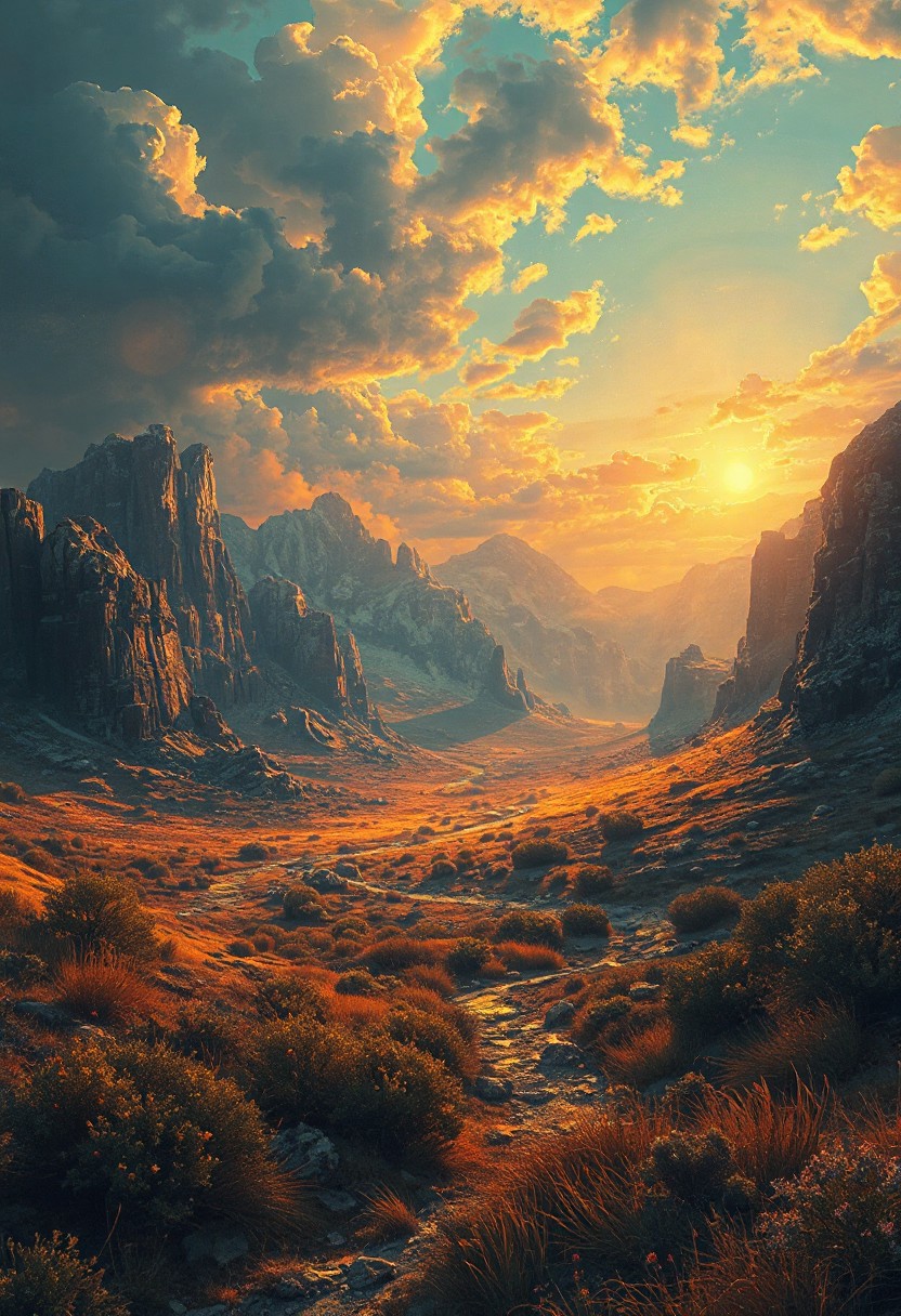 A masterpiece digital, cinematic painting, A dystopian aesthetics landscape Finely Detailed, with hints of gold, vibrant and colourful, HDD+