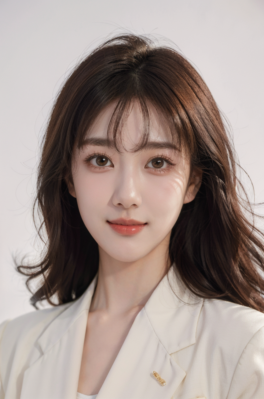 Li YiTong,1girl,smile,solo,suit,brown hair,upper_body,<lora:æèºå½¤:0.7>,(simple background:1.2),(white background:1.2),, (masterpiece:1.323),(best quality:1.241),(contrast boost:1.11),(available light:1.1),(realistic:1.2),(intricate details:1.2),(colorful:1.12),(ultra high res:1.2),(Hyperrealistic:1.2),(highly detailed:1.1),8K,light effect,