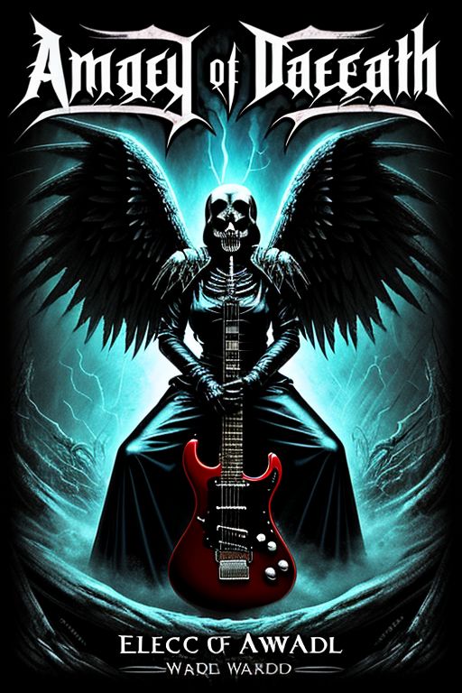 angel of death metal, award winning death metal album cover, electric guitar, blood, text title "angel of death"