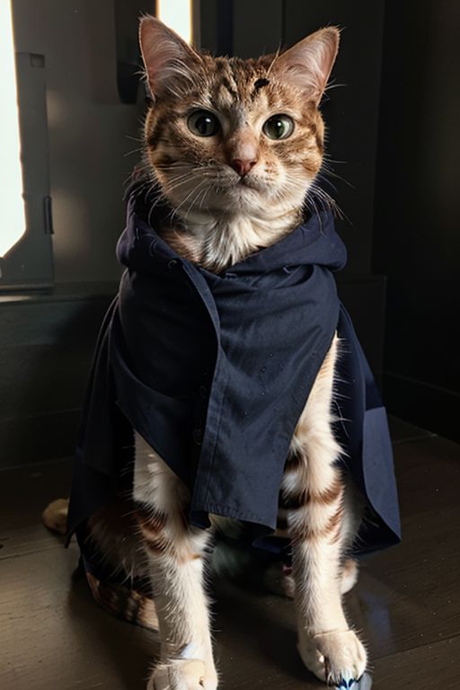 a master jedi cat in star wars with a lightsaber, wearing a jedi cloak hood (cat:1.3)