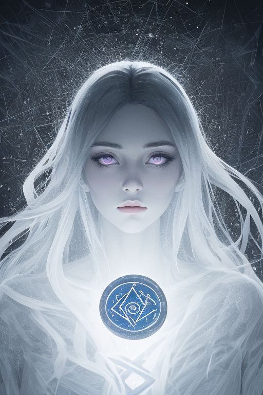 alcohol black and color illustration on parchment. Precise. A ghostly female silhouette. Messenger of Ice God. Undead. Canvas clothes. seductive. Runic circle. Elements. Ice from inside. Glowing eyes. Bokeh blur.