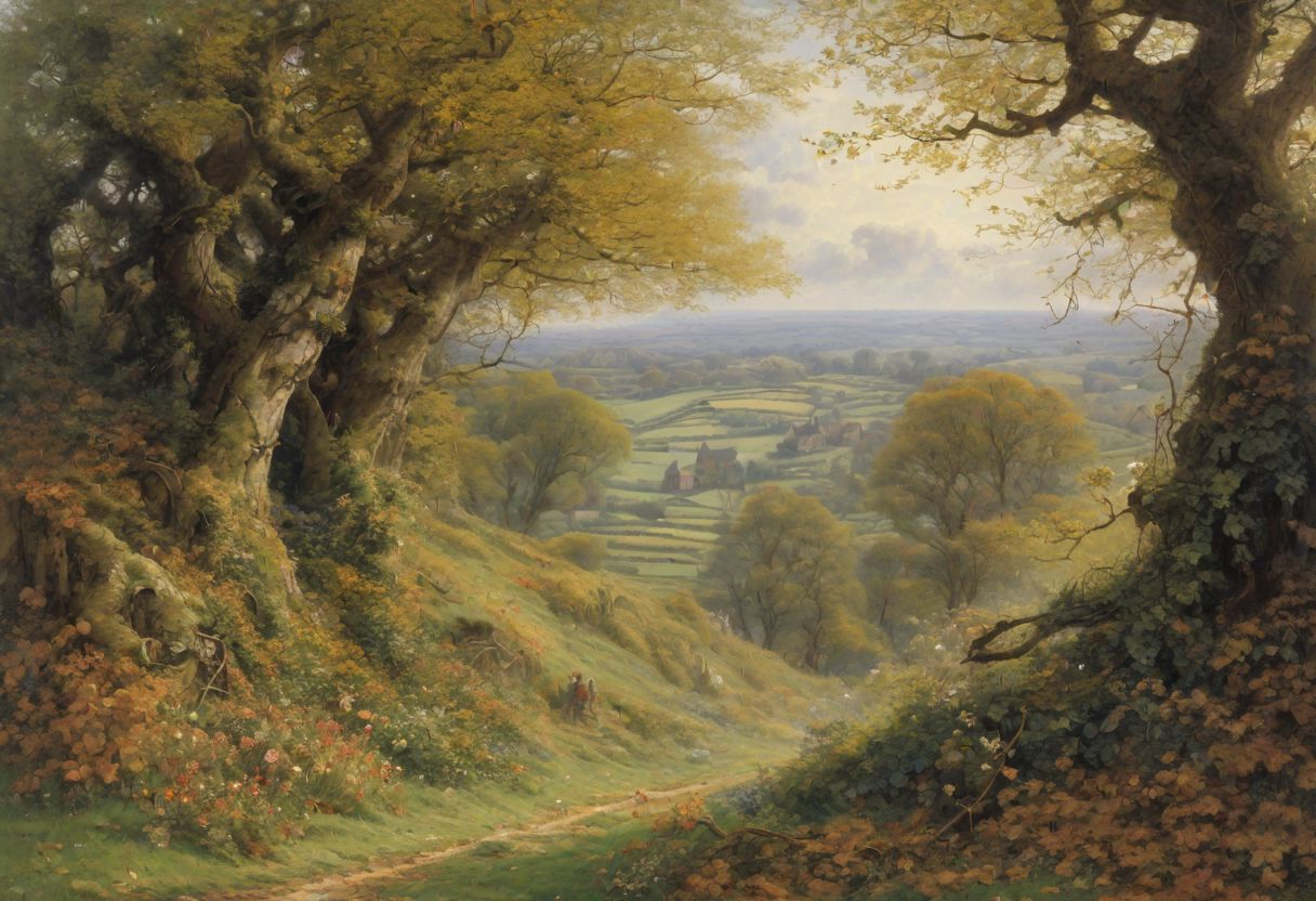 Clank rattle scrape, vines dirt dead leaves, freeform explosions of deep madness, style of Helen Allingham