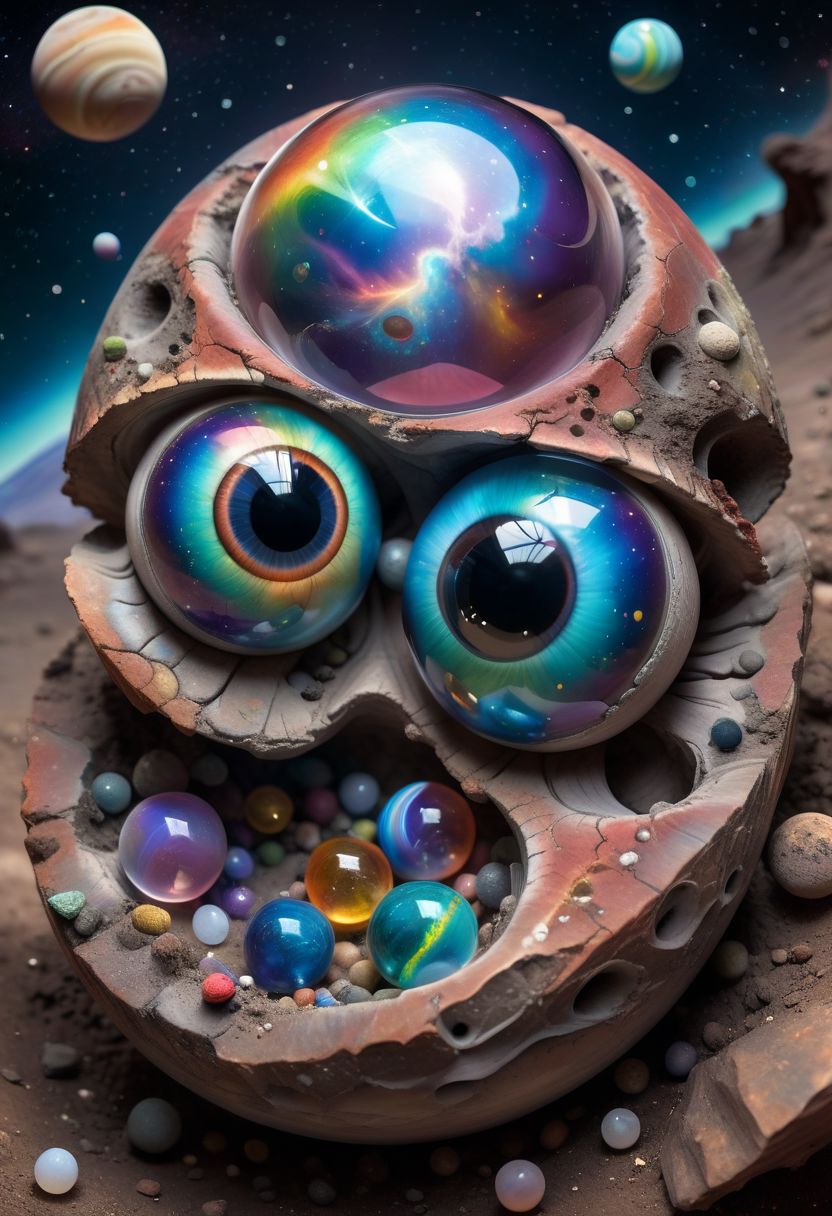 1girl: beautiful, photorealistic, fantasy intricate elegant, ultra realistic, decadent, ray tracing, Two alien children with oversized, multifaceted eyes and iridescent skin giggle as they play with marbles which are actually the Earth and Moon. Their playground is a nebula of swirling colors, and tiny meteorites whiz past like stray pebbles. The children's laughter echoes out into the cosmos, a melody of innocent fascination echoing against the fragile beauty they hold in their hands.