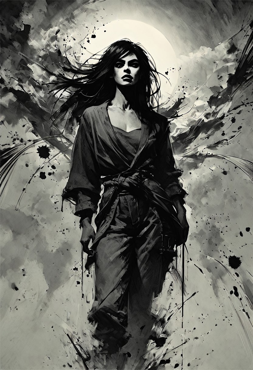 score_9, score_8_up, score_7_up, 1girl, solo, (Celty Sturluson), on the bike, monochromemuse, monochrome, greyscale, ink splatter, vibrant colours, zoomed in, epic shot, dramatic lights, Yellow, blue