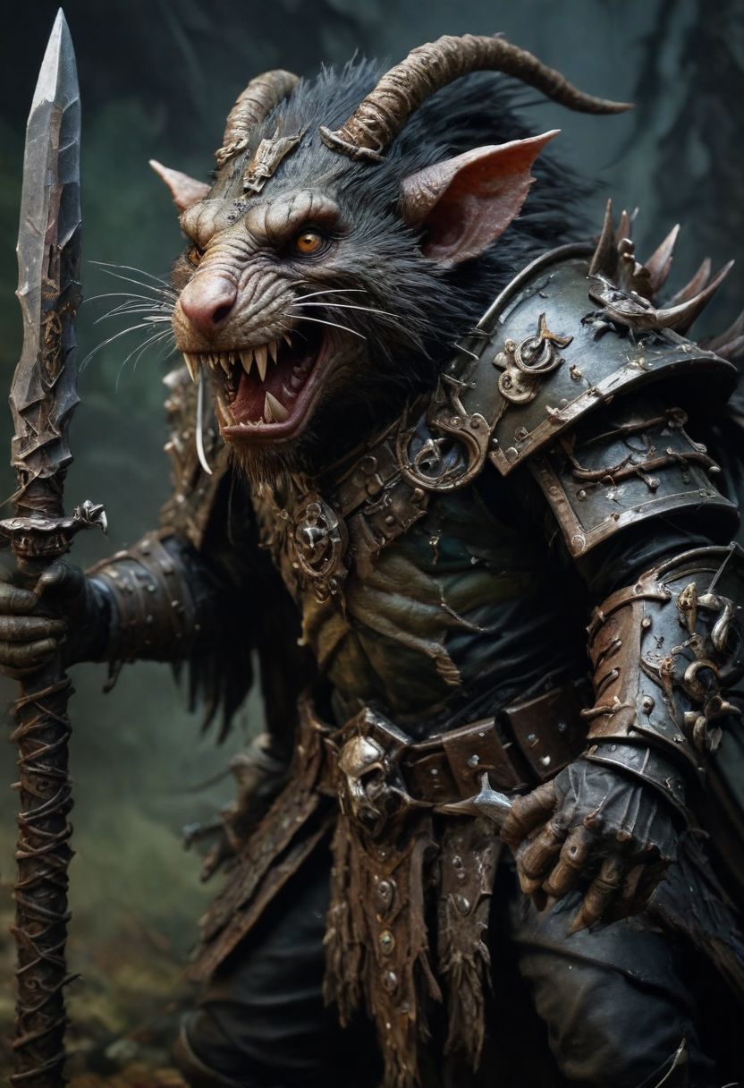 Warhammer Beastrat Skaven warrior, Black over black, top light, masterful painting in the style of Anders Zorn | Marco Mazzoni | Yuri Ivanovich, Todd McFarlane, oil on canvas