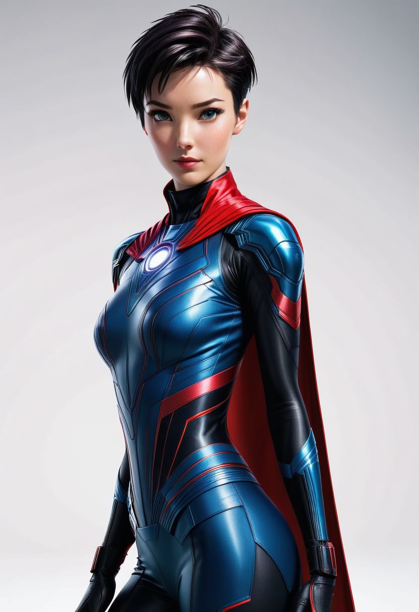 Anna, dressed as doctor strange, powered futuristic outfit, red cape and high collar, black punk hair, semi shaved hair, style of stanley artgerm, artgerm style, white background, simple background