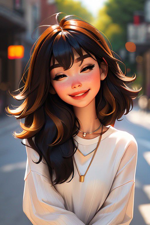 sam yang, 1girl, bangs, black hair, black shirt, blurry, blurry background, bokeh, brown eyes, brown hair, closed mouth, day, depth of field, hair between eyes, half-closed eyes, head tilt, jewelry, lips, long hair, long sleeves, looking at viewer, multicolored hair, necklace, nose, outdoors, shirt, smile, solo, thick eyebrows, two-tone hair, upper body , ((masterpiece)) <lora:sam_yang_offset:1>
