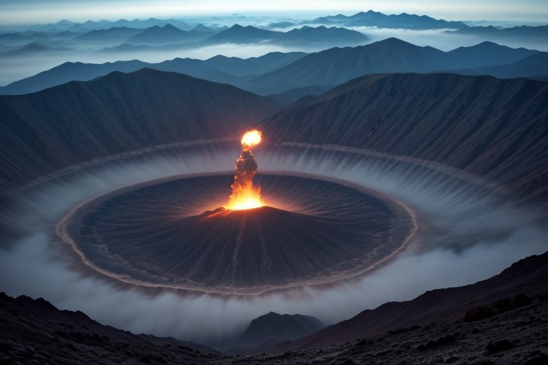 Volcanoes that had been dormant for thousands of years began to become active. The tremors of the earth gradually became stronger from weak to unnoticeable, and then became clearly visible. The silent dormant volcano finally woke up, and the Datun volcano group erupted on a large scale, triggering a chain reaction in the magma chamber buried deep in Jinshan and thousands of miles underground. Pyroclastic flows with speeds of hundreds of kilometers per hour erupted, and volcanic bombs hit Shilin, Tianmu and Beitou. A quarter of Taipei City was completely reduced to a sea of flames, and the situation was like a living hell. The huge black object buried in the belly of Datun Mountain floated into the night sky, taking the shape of an upright gasoline barrel with a huge eye in the center of its belly. Its name is the Palace of Change, and it is the palace and mobile fortress of the King of the Abyss with self-awareness. FHD, rich in detail, masterpiece, realistic style, canon 5D4.