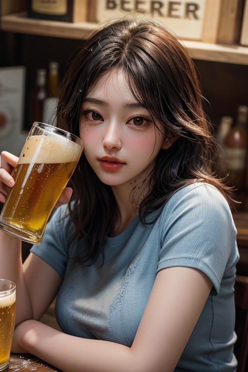 (RAW photo, best quality), (masterpiece:1.2), (realistic, photo-realistic:1.3), best quality, highres, 8k wallpaper, Amazing, finely detail, ultra-detailed, women enjoying beer at a beer festival, most of the bodies were soaked in beer, holding a glass of beer,
