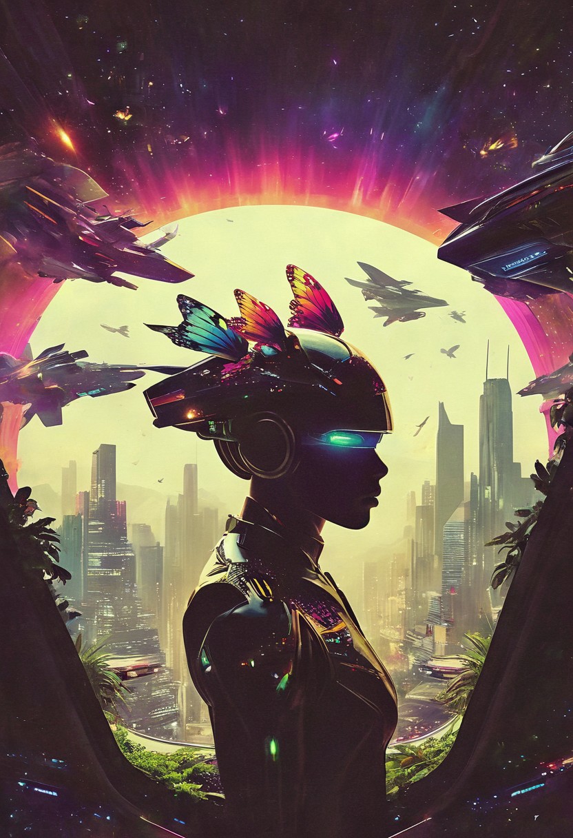 Create a drawing of an explosion of colorful butterflies isolated on white background, inspired by the unique and dark artistic style of Loish. It should have exaggerated features, with elements that reflect the quirky and gothic undertones ultra realistic skin textures BREAK ()Hyoer Realistic:2.0)Polaroid picture an image of San Francisco transformed into a Cyberpunk tropical paradise. The cityscape is a vibrant, neon-lit utopia, with towering skyscrapers and lush, green vegetation. (Above the city, an air racetrack stretches across the sky, with sleek, high-tech cars zooming by, inspired by F-Zero vehicles.:1.66) The atmosphere is warm and humid, with a hint of tropical flowers and the distant hum of futuristic technology. The people of this utopian empire live in harmony, their faces radiant with joy and contentment. Capture the surreal, futuristic beauty of this scene, where the boundaries between technology, nature, and society blur, and the possibilities of human achievement are redefined.