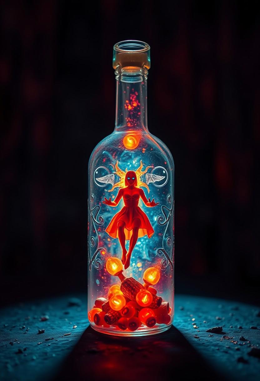 (By Larry Carlson:100), hades inside a bottle , (olympus background details:1.45), dof, realistic details, mythological aesthetic, (style Jeremy Geddes:1.35), (Harsh lighting:1.4), cinematic, dramatic, raw, rating_safe, unique perspective