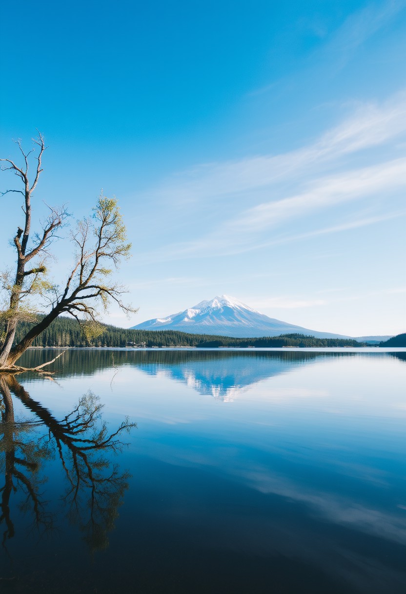 outdoors, sky, day, water, blue sky, tree, no humans, scenery, nature, reflection, forest, blue theme, mountain, lake, reflective water