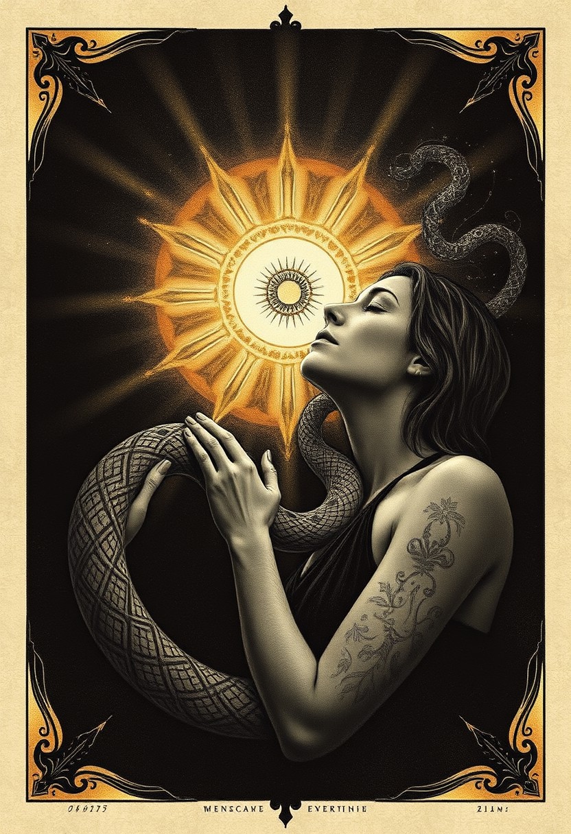 She came to me with a serpent's kiss As the Eye of the Sun rose on her lips Moonlight catches silver tears I cry So we lay in a black embrace And the seed is sown in a holy place And I watched, and I waited for the dawn