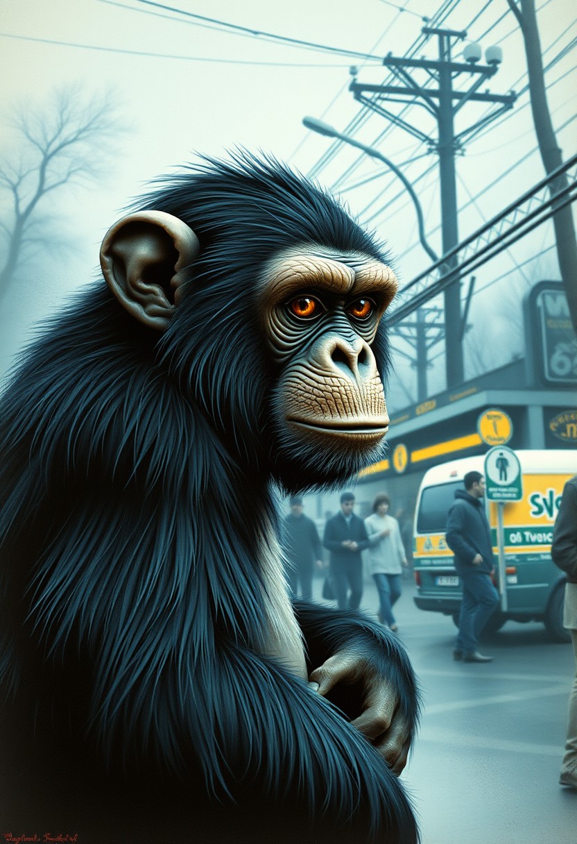 In the time of chimpanzees I was a monkey, Butane in my veins and I'm out to cut the junkie, With the plastic eyeballs, spray-paint the vegetables, Dog food stalls with the beefcake pantyhose