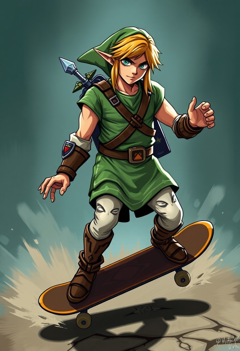 Cool skateboarding Zelda styling on an embarassed muscular link