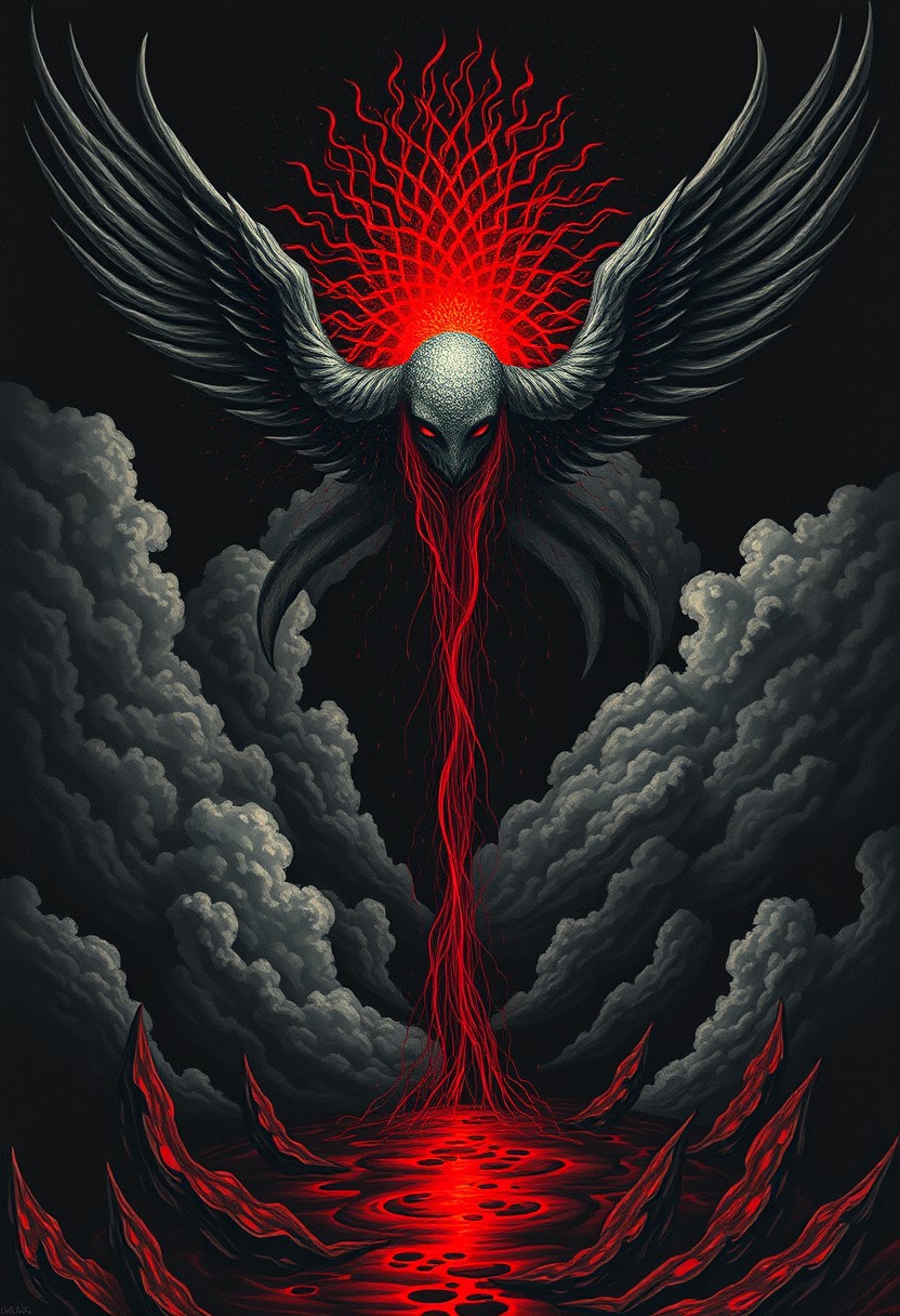 (art by Eduard Wilhelm Pose and Master of the Holy Blood and Ivan Bilibin:1.1), (sheltered atmosphere, aesthetic of hard - edge painting:0.1), symmetry and balance, pure black, detailed, FastNegativeV2, ral-dissolve,Completely (James Ensor,Unica Zurn,Zdzislaw Beksinki:1.25), Paranormal, Apparition, intricate, oil on canvas, (surrealism:1.1), detailed, FastNegativeV2, amazing quality, masterpiece, best quality, hyper detailed, ultra detailed, UHD, perfect anatomy, (Award winning, masterpiece), clouds, apocalypse, armageddon, flying spaghetti monster