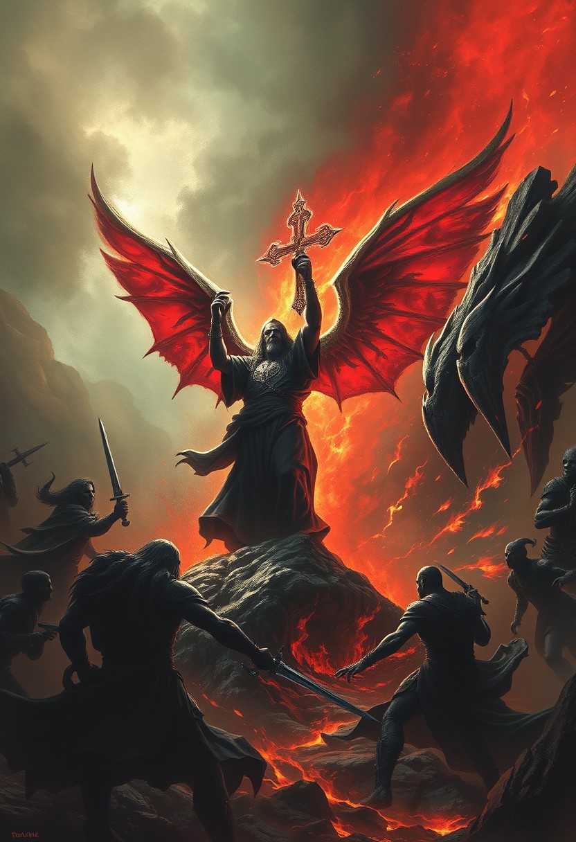 Existing on damnation's edge The priest had never known To witness such a violent show Of power overthrown Angels fighting aimlessly Still dying by the sword Our legions killing all in sight To get the one called Lord The Gates of Hell lie waiting as you see There's no price to pay just follow me I can take your lost soul from the grave Jesus knows your soul cannot be saved Crucify your so-called Lord He soon shall fall to me Your souls are damned your God has fell To slave for me eternally Hell awaits... The Reaper guards the darkened Gates That Satan calls his home The demons feed the furnace where The dead are free to roam Lonely children of the night There's seven ways to go Each leading to the burning hole That Lucifer controls Priests of Hades seek the sacred star Satan sees the answer lies not far Zombies screaming souls cry out to you Satanic law prevails your life is through Pray to the moon... when it is round Death with you shall then abound For what you seek... for can't be found In sea or sky or underground Now I have you deep inside my everlasting grasp The seven bloody Gates of Hell Is where you'll live your last Warriors from Hell's domain Will bring you to your death The flames of Hades burning strong Your soul shall never rest Hell awaits...