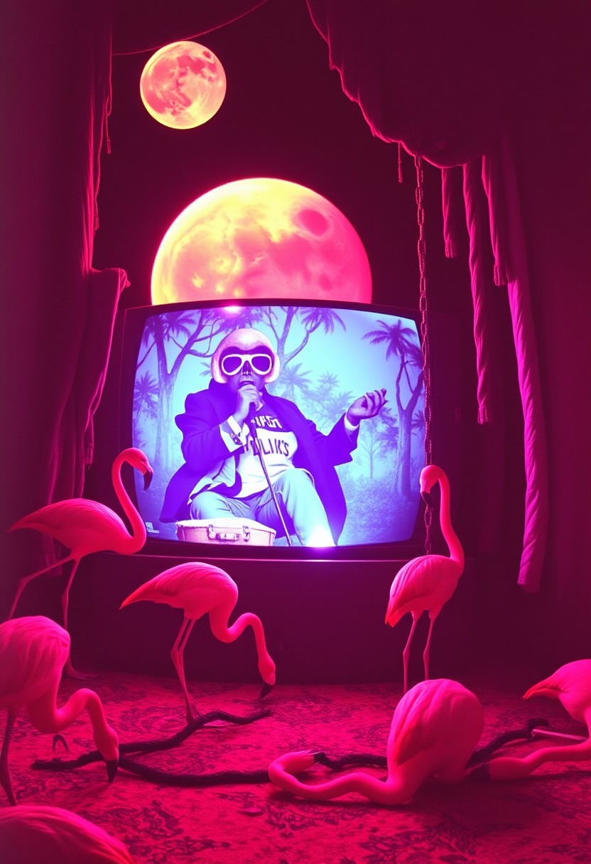 In my youth I took a trip My first initial acid trip And it hit me like a ton of bricks My eyes, they quickly dialated I began hallucinating At the tender age of eighteen As I watched the TV My dog speaking to me Telling me I'm going insane I recall a scene it's halloween And I am dressed as a drag queen Peaking to the point of no return I met a man I shook his hand He spoke I could not understand He was covered with flies and afterbirth The mandrills were singing The bees they were stinging As pink flamingos laid dead on the ground