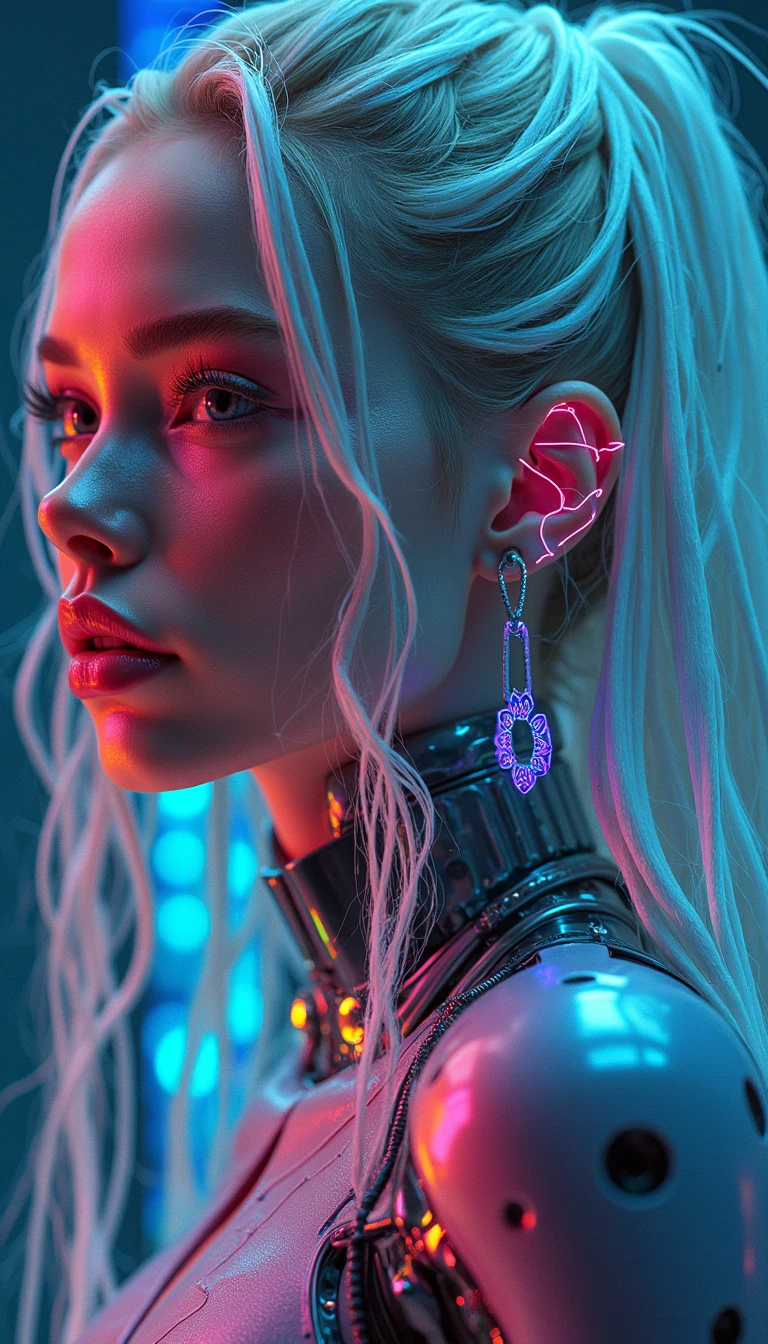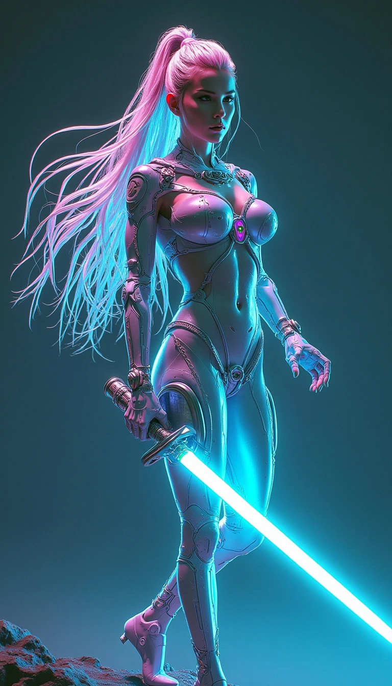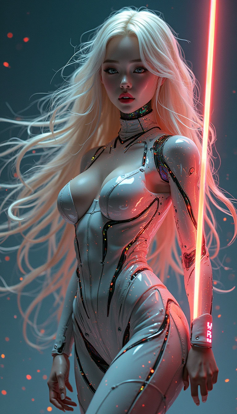 high quality, 8K Ultra HD, full body, have a cyber saber, a mesmerizing 20-year-old woman with a futuristic beauty that seems to transcend time and space, intricately woven into her very being, encased in the cybernetic suit, move with fluidity and precision, Her flowing hair resembles streams of neon lights, casting a vibrant glow that adds a touch of cyberpunk brilliance to her appearance, Each strand of hair is meticulously crafted with holographic patterns that shimmer and shift, creating an ever-changing display of colors, by yukisakura, highly detailed, nude, nsfw, text, letters, too many feet, too many fingers, long neck, 2 heads, duplicate, abstract, disfigured, deformed, toy, figure, framed, disfigured, bad art, deformed, poorly drawn, extra limbs, weird colors, 2 heads, elongated body, cropped image, out of frame, draft, deformed hands, twisted fingers, double image, malformed hands, multiple heads, extra limb, ugly, poorly drawn hands, missing limb, cut-off, over satured, grain, lowères, bad anatomy, poorly drawn face, mutation, mutated, floating limbs, disconnected limbs, out of focus, long body, disgusting, extra fingers, groos proportions, missing arms, mutated hands, cloned face, missing legs,
