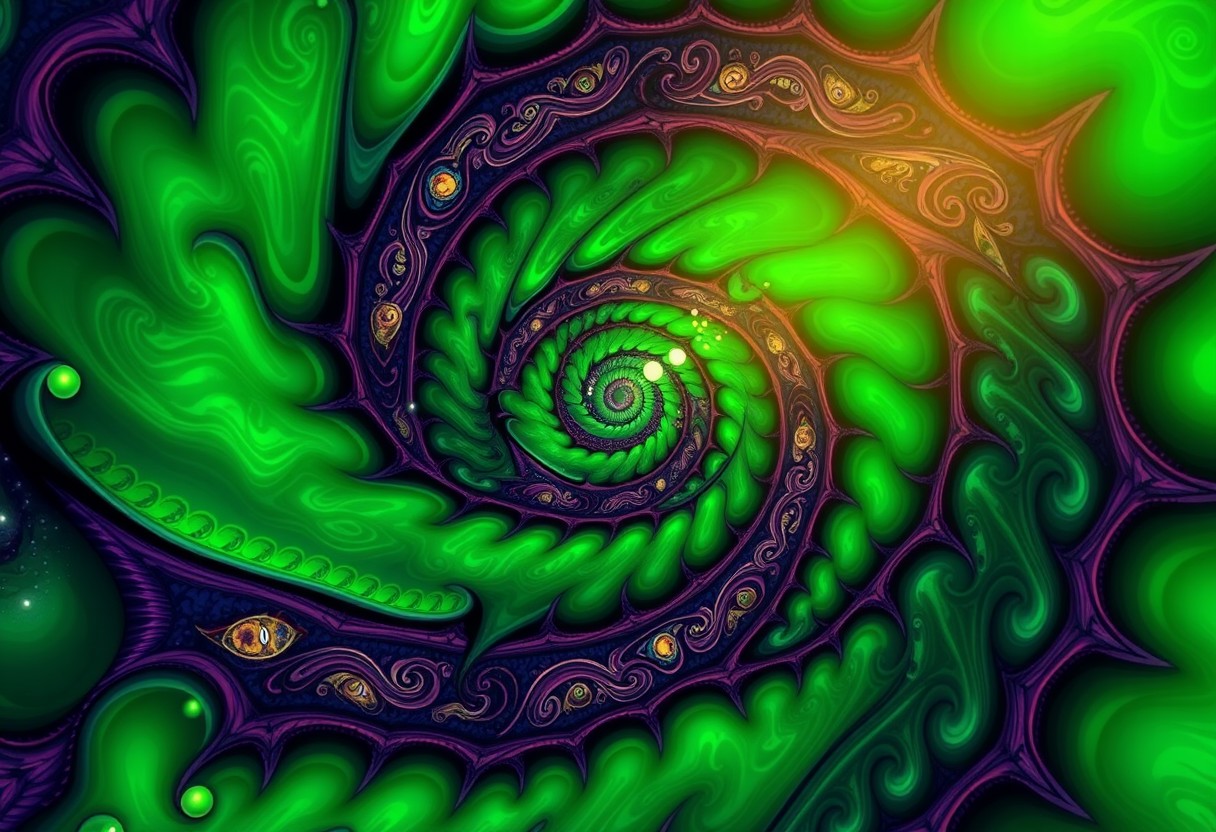 green eye fractal spiral illustration psychedelic hallucination visuals