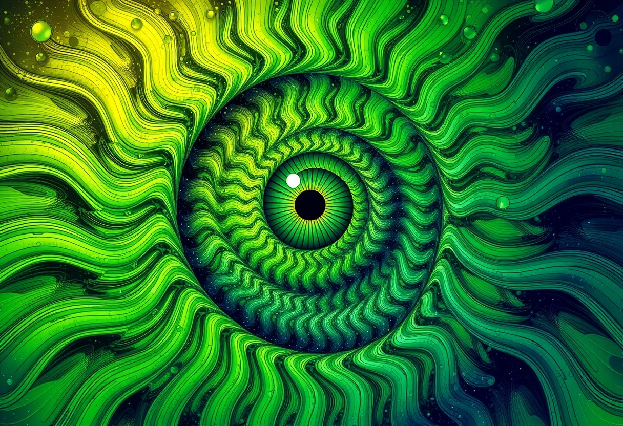 green eye fractal spiral illustration psychedelic hallucination visuals