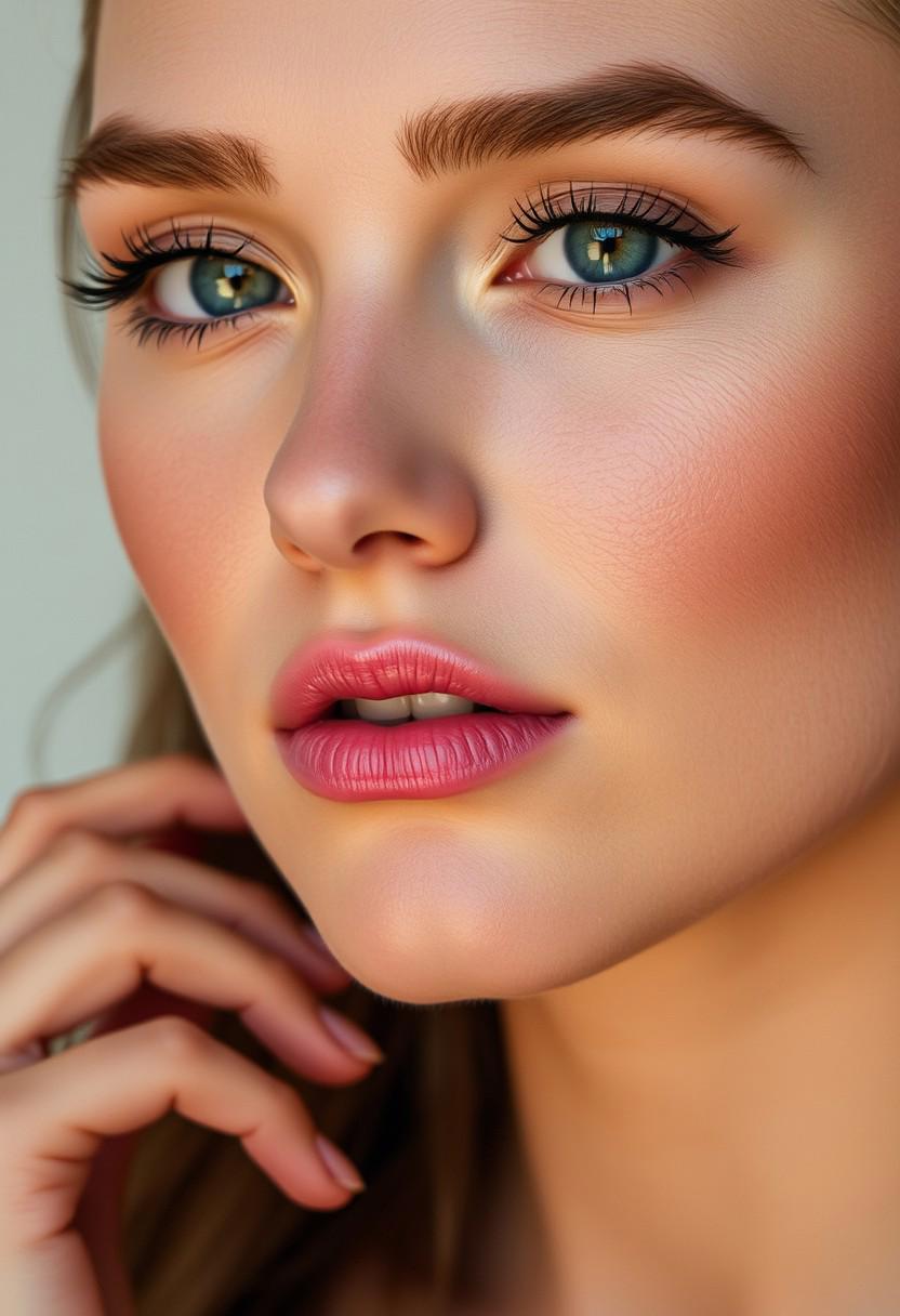 Elegant, Graceful, Radiant, Stunning, Poised, Glamorous, Refined, Chic, Sophisticated, Beautiful, Feminine, Classic, Dazzling, Sleek, Timeless, Enchanting, Stylish, Lovely, Luxurious, Exquisite, Pores, Subtle skin, Authentic Skin, natural detailed skin, face closeup, portrait