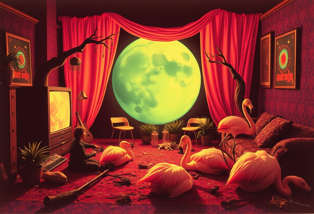 In my youth I took a trip My first initial acid trip And it hit me like a ton of bricks My eyes, they quickly dialated I began hallucinating At the tender age of eighteen As I watched the TV My dog speaking to me Telling me I'm going insane I recall a scene it's halloween And I am dressed as a drag queen Peaking to the point of no return I met a man I shook his hand He spoke I could not understand He was covered with flies and afterbirth The mandrills were singing The bees they were stinging As pink flamingos laid dead on the ground