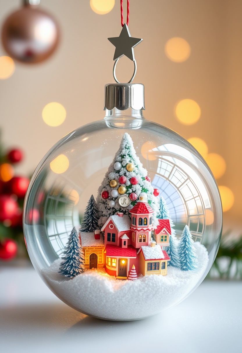 A Christmastree in Christmas ball with christmas balls on it which have tiny Townes in them