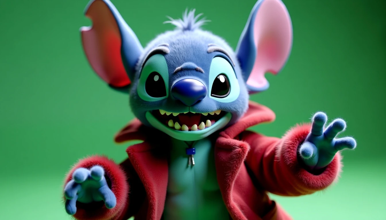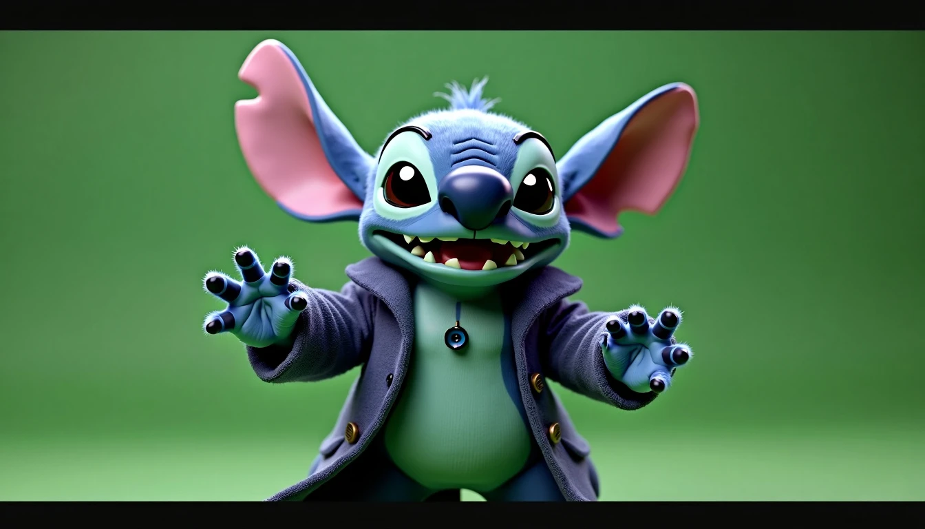 3d fluffy Stitch dressed as Dr strange Youtube thumbnail format green screen watch this