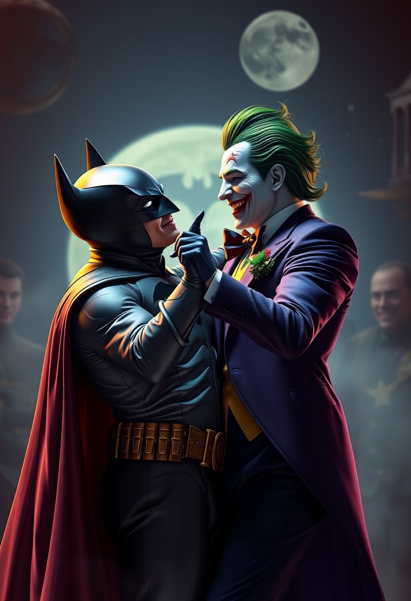 Realistic highly detailed photo of Batman and the Joker ballroom dancing