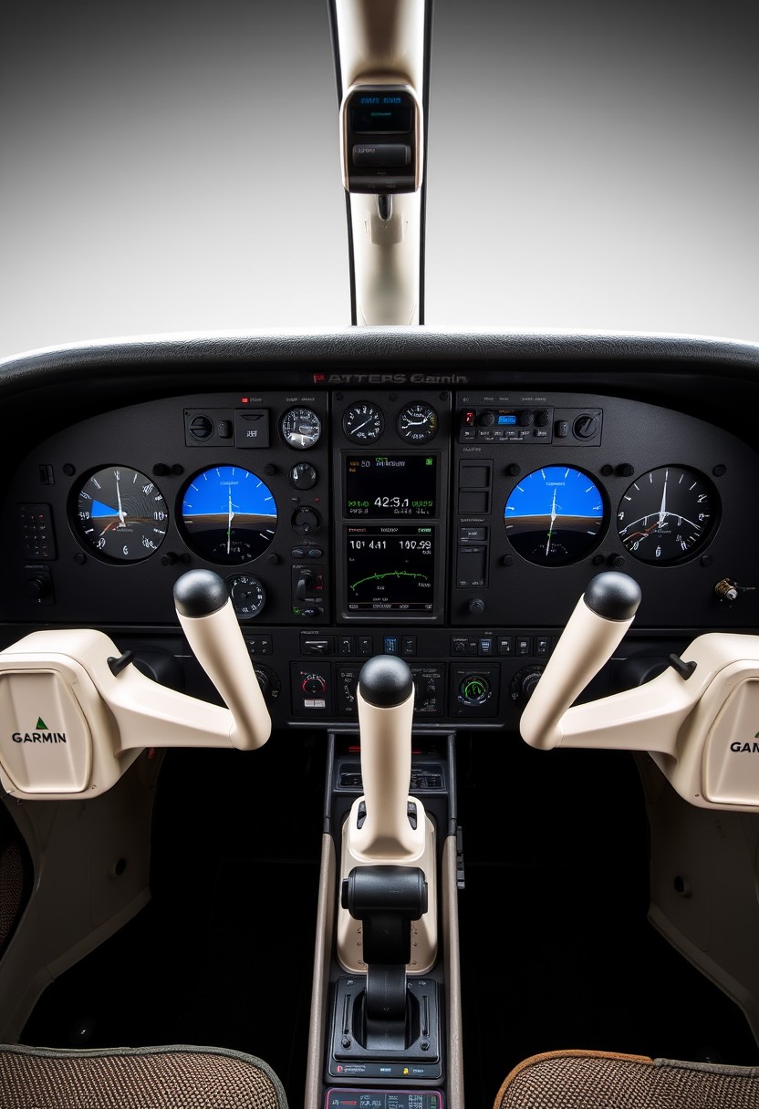 A beautifully composed professional photograph of a Cessna 172 instrument panel after a full Garmin upgrade, GTN 750xi ,G5, G 1000