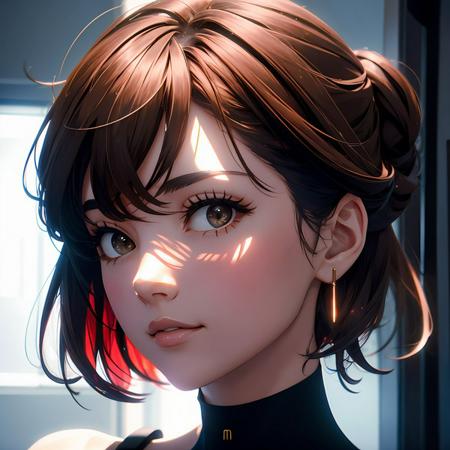 A futuristic strip club in outer space with the latest fembot stripper models. Large windows in the club reveals the surrounding cosmos. The robotic fembot strippers are obviously not human but are still elegant, beautiful and sexy. One particular fembot approaches the viewer at the bar strutting her stuff.