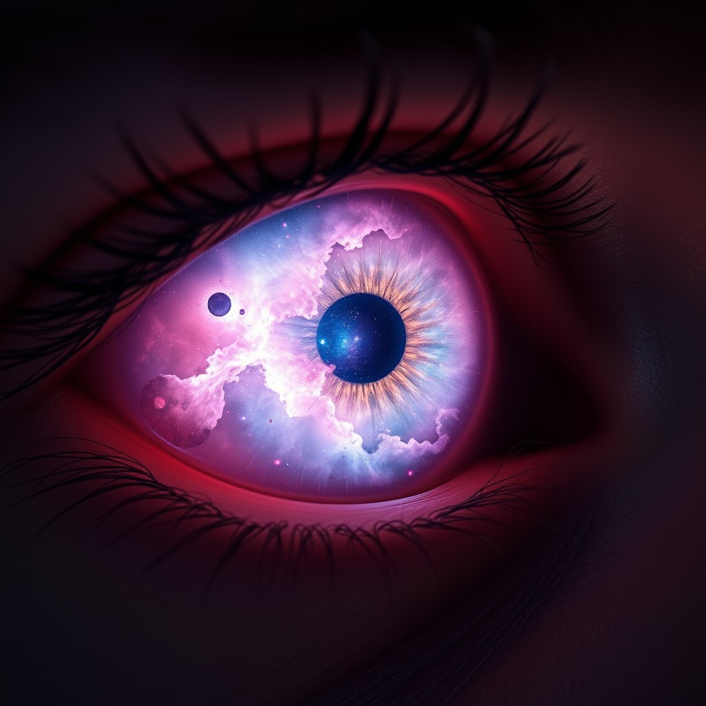 closeup of a persons eye, but the eye is a nebula, ultra-realistic yet surreal