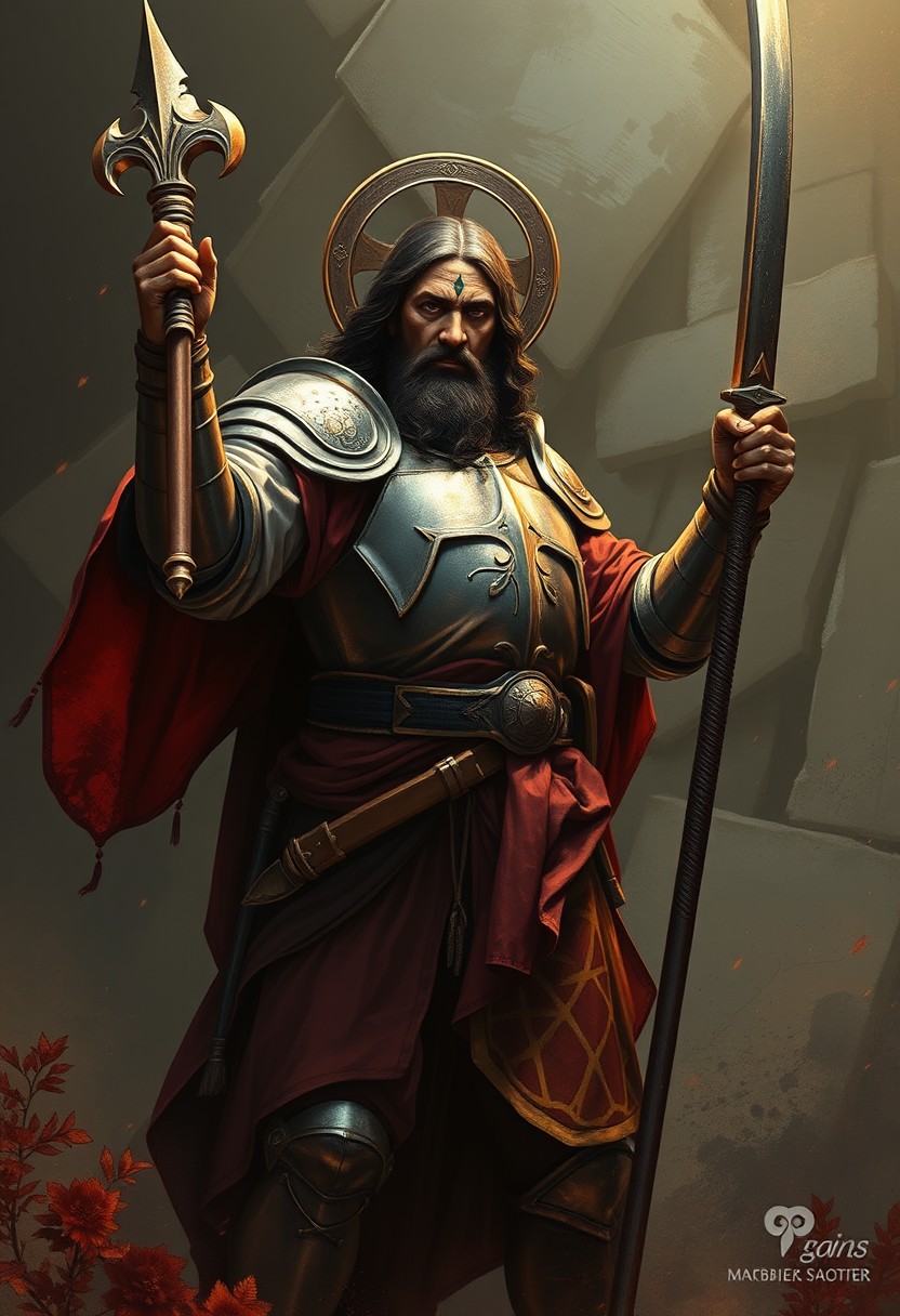 Jesus Christ, fladder in heavy armor, wielding a zweihander, about to cleanse infidels Dark fantasy style