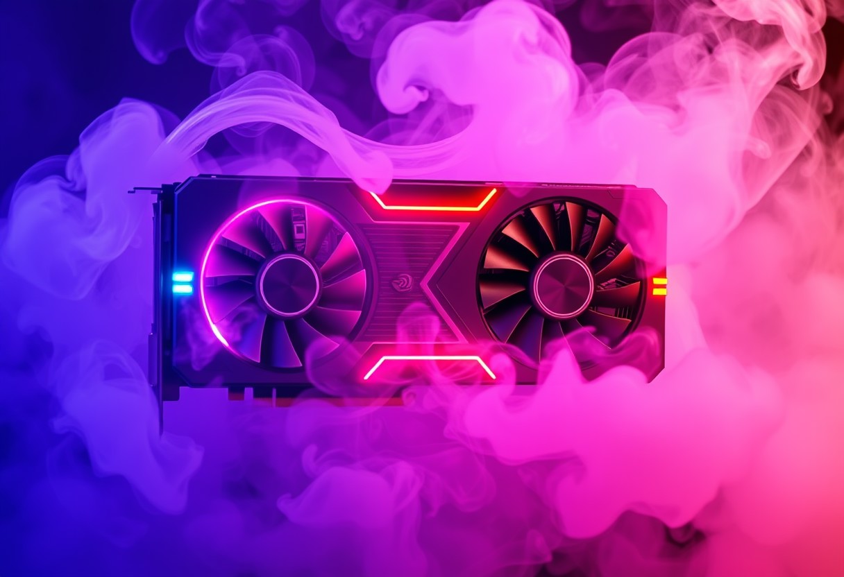 highly detailed, 8k, UHD, score_9, score_8_up, score_7_up, RGB nvidia rtx 4090 graphics card, GPU, smoking text that says "buzz for 4090"