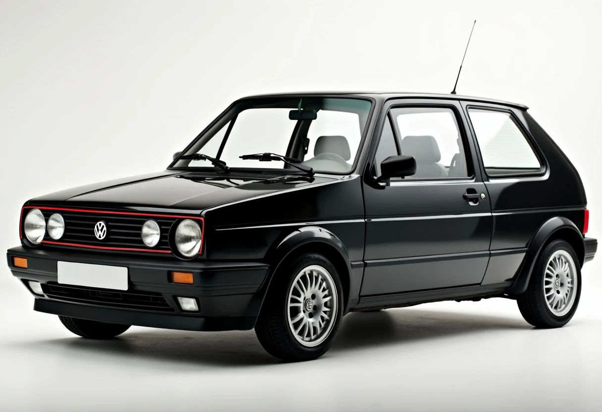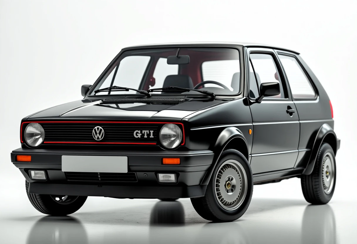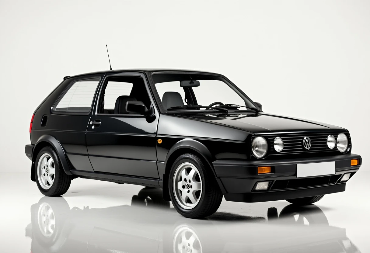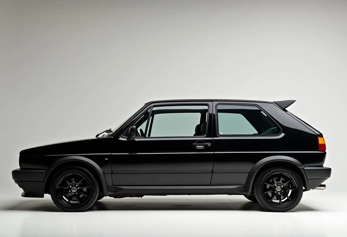 studio photograph of a black 1994 Volkswagen Gol GTI 2.0 on a white background, sharp focus, digital photography, high quality, 8k, 4k