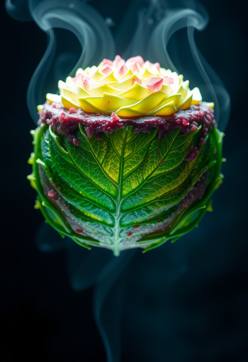 a space cake ,hypnotic,yummy,fumes looking like a majiuana leave floating up