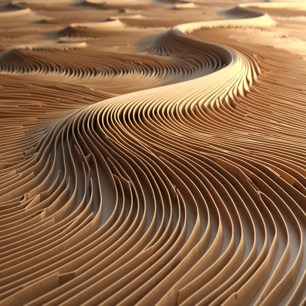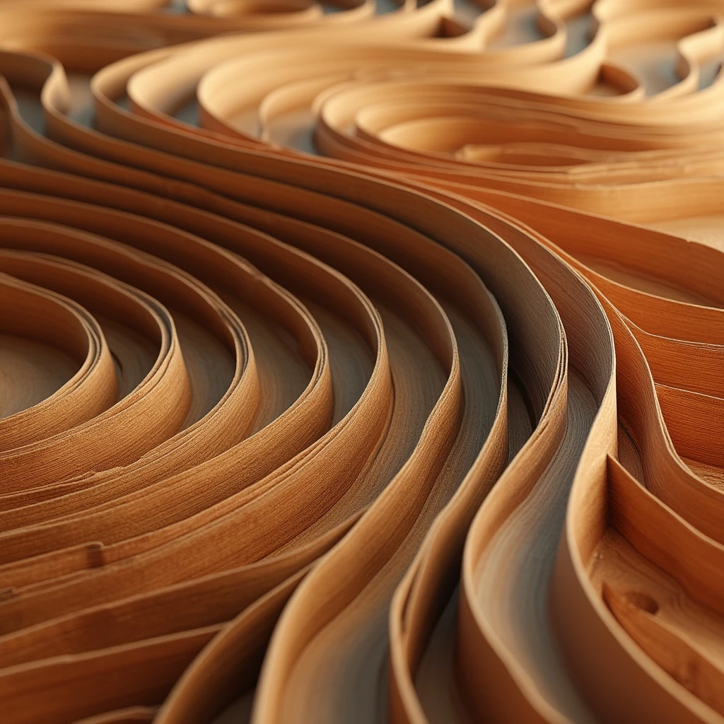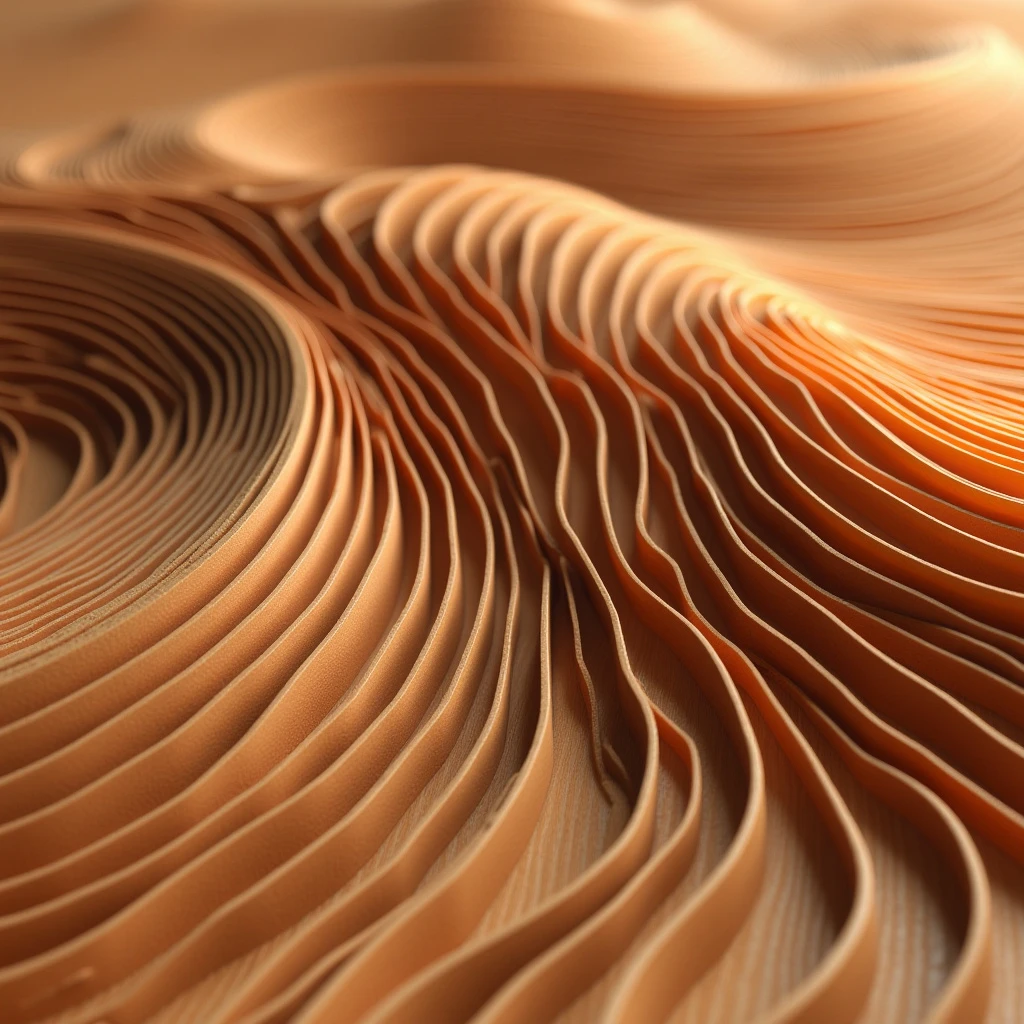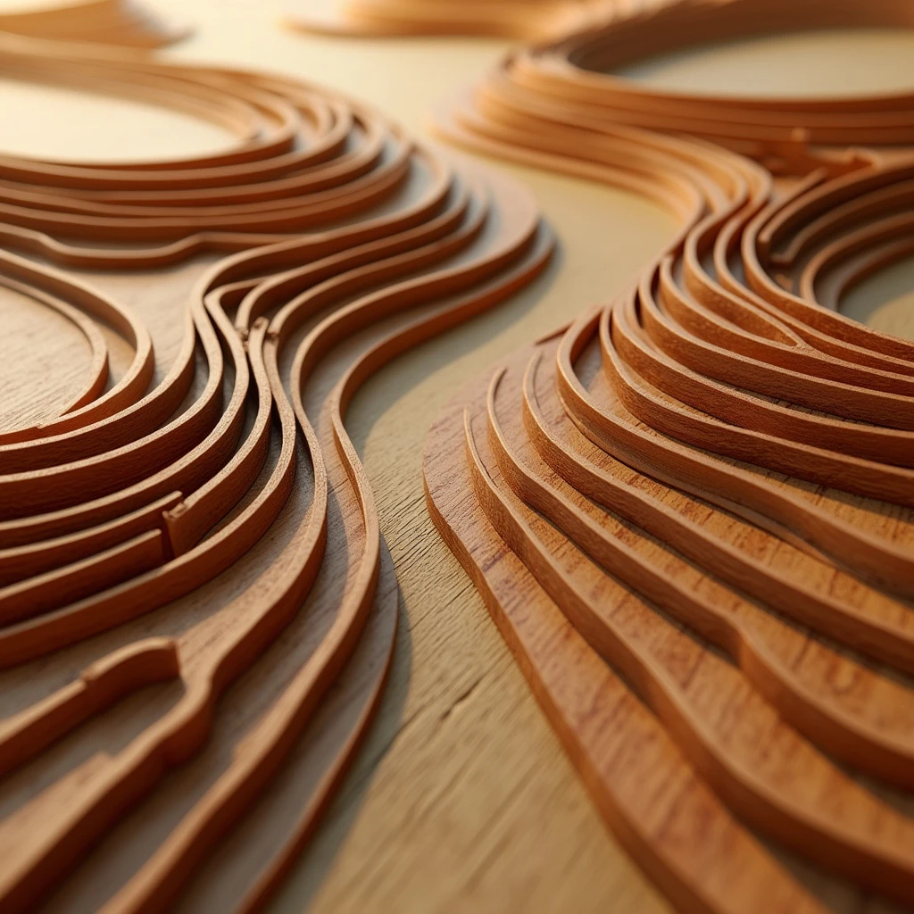 beautiful 3d smooth lines, there a lot of these lines following curves, they are on a warm wooden background