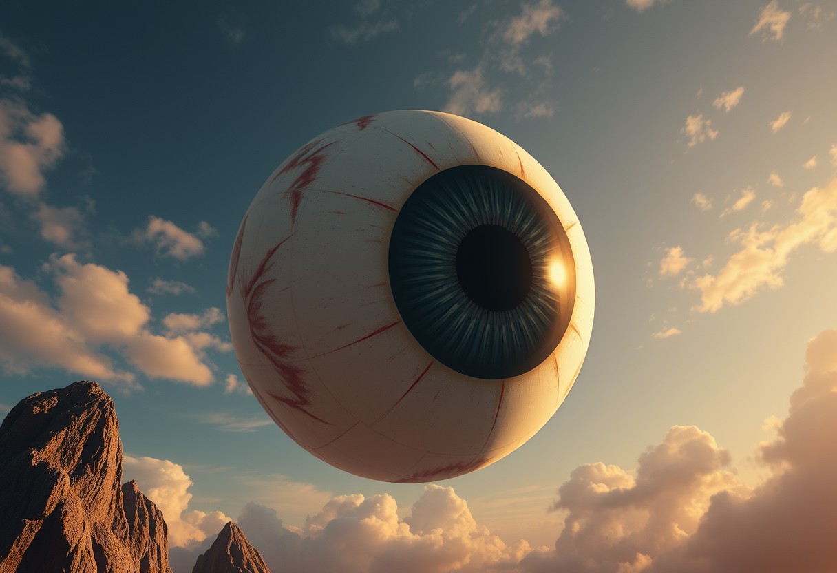 cinematic, 32k, hyper detailed, a giant eyeball in the sky,