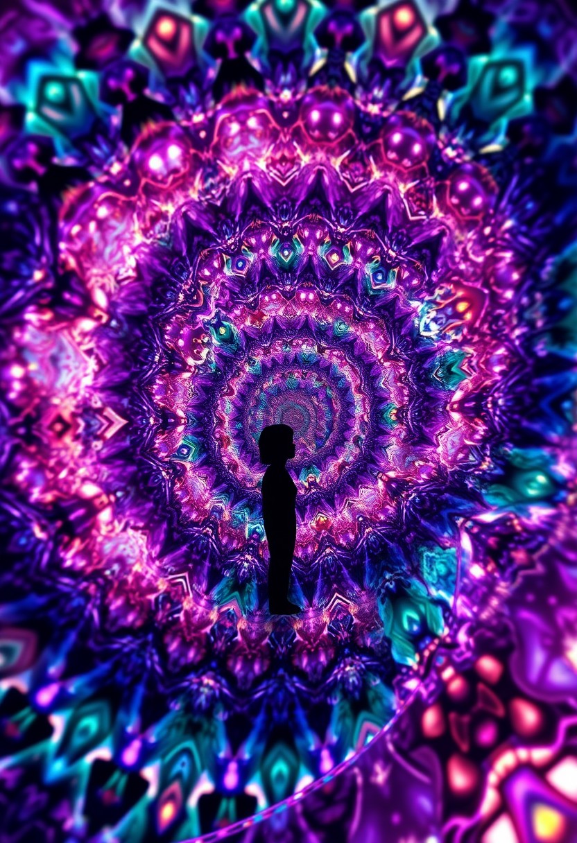 Create a surreal, dreamlike scene of a person's memories, represented as a kaleidoscope of colors and shapes that seem to shift and change as the viewer looks at them. The memories are arranged in a spiral pattern, with each one overlapping and blending into the next, creating a sense of depth and texture. The art style is a fusion of traditional M.C. Escher-style tessellations and digital art, with intricate, detailed patterns and bold, vibrant colors that create a sense of depth and texture. The colors are bright and glowing, with a focus on purples, blues, and greens to convey a sense of nostalgia and wonder. Style: M.C. Escher-style tessellations, digital art, surreal. Colors: bright, glowing, purple, blue, green. Highest-Quality, 4k, Masterpiece