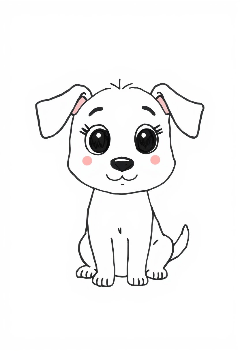 A simple doodle of a cartoon cdog, drawn in the style of a child with minimalistic lines and shapes. The character is designed to be cute but not complex or detailed. It should have exaggerated features like large eyes and ears typical for children's illustrations. Black ink on a white background. in the style of Gemma Correll, c 50,