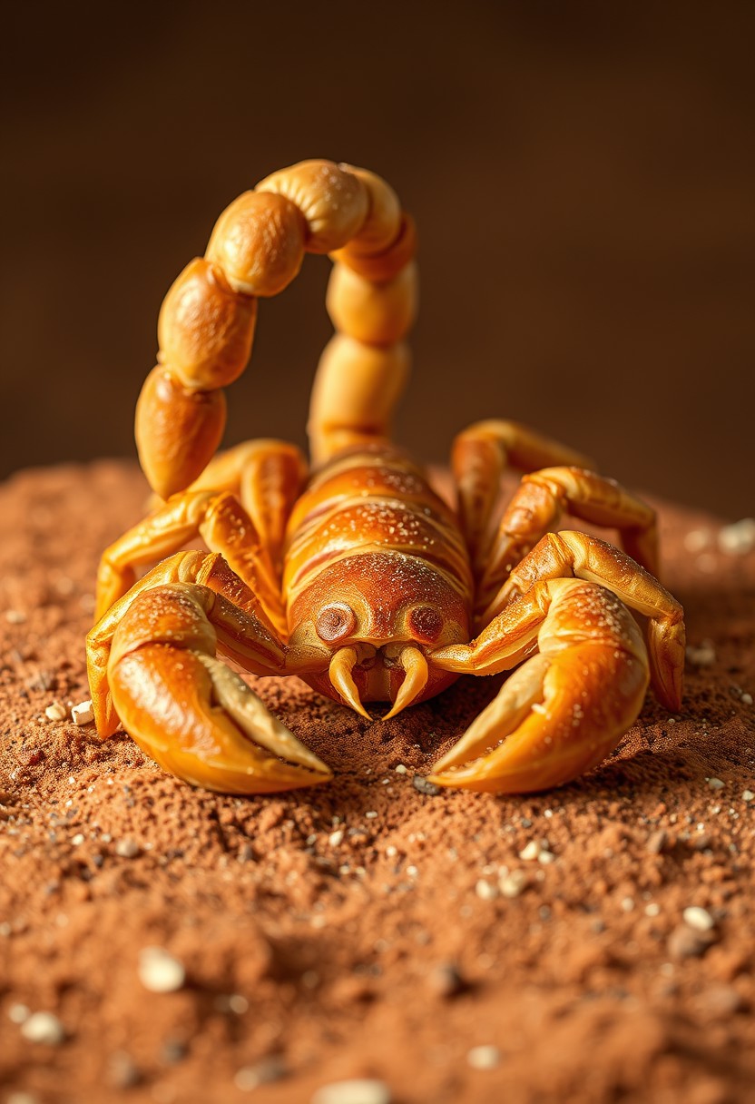 scorpion made out of bread, red desert, bokeh