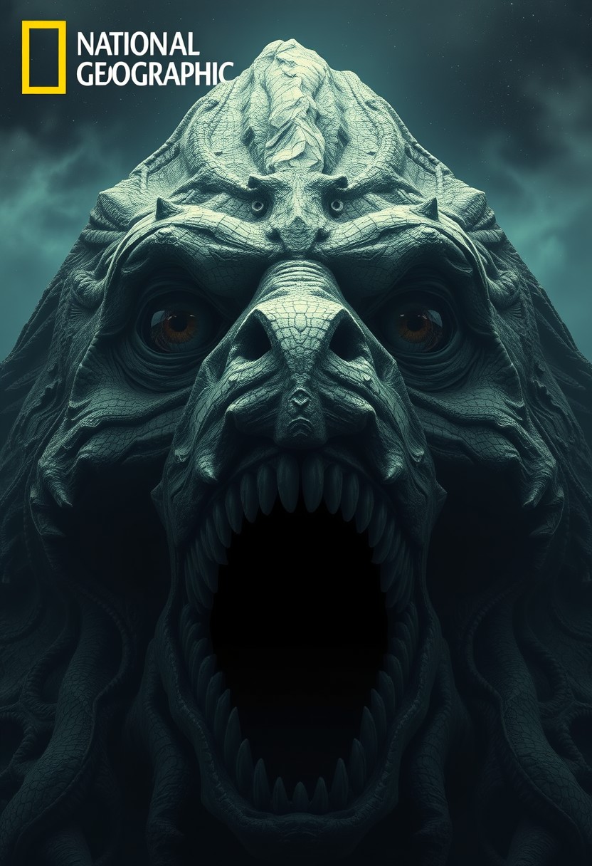 Lovecraftian realism, 32k UHD, national geographic style, photography, mysterious terrifying horrifying scary enormous anthropomorphic mountain, eyes, mouth, night, intricate design, photorealistic, hyperrealistic, high definition, extremely detailed, cinematic, UHD, HDR, 32k, ultra hd, realistic, vivid colors, highly detailed, perfect composition, beautiful detailed intricate insanely detailed octane render, trending on artstation, artistic photography, concept art, soft natural volumetric cinematic perfect light, Macro photography, close-up, hyper detailed, trending on artstation, sharp focus, studio photo, intricate details, highly detailed