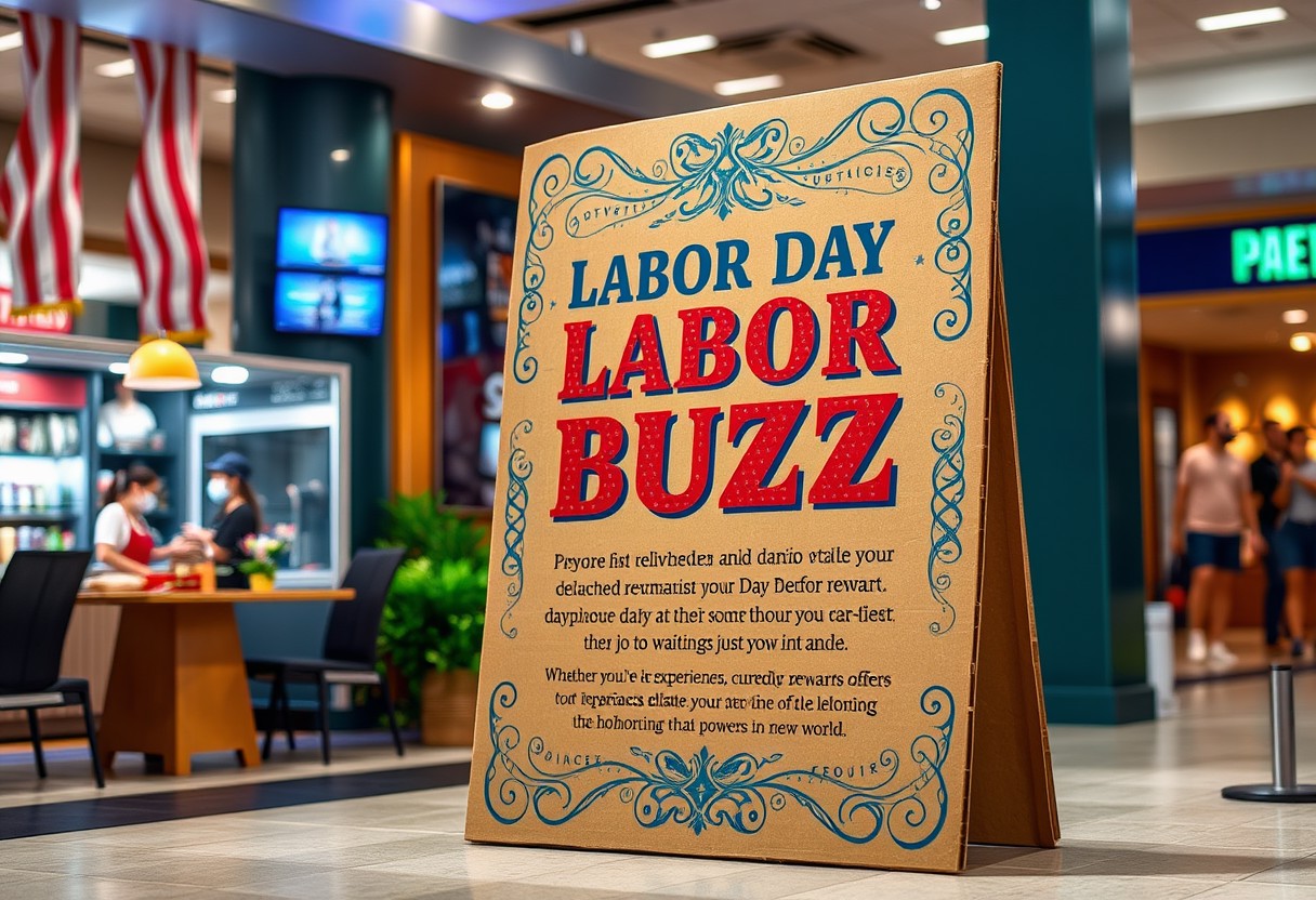 Prepare for an extraordinary Labor Day celebration where your dedication and effort are met with unmatched rewards. Imagine stepping into a lively atmosphere, where a striking cardboard display titled ‘Labor Day Buzz’ stands tall, adorned with intricate designs and vibrant colors that capture the spirit of the day. The sign draws you in, hinting at the exclusive surprises and luxurious offers waiting just for you. Whether you’re seeking relaxation or indulgence, our carefully curated experiences and top-tier rewards promise to elevate your Labor Day to new heights. Seize this opportunity to celebrate your achievements in style – because this day is all about honoring the hard work that powers our world.