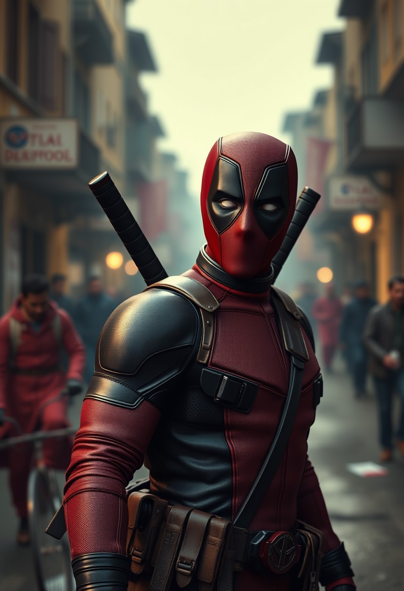 Deadpool in Italy, best quality, realistic, cinematic lighting, hyperrealistic, perfect quality