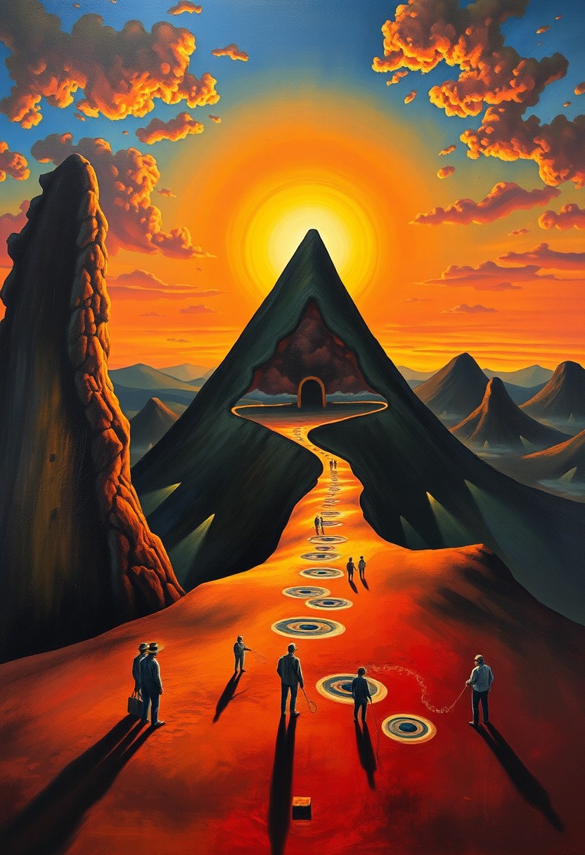 original painting by Salvador Dali "the permanence of memory", oil on canvas, Fantastically beautiful, high resolution, mesmerizing, sunset, dawn, wide color palette, magnificent people, beautiful animals, masterpiece, nature, ultra detail