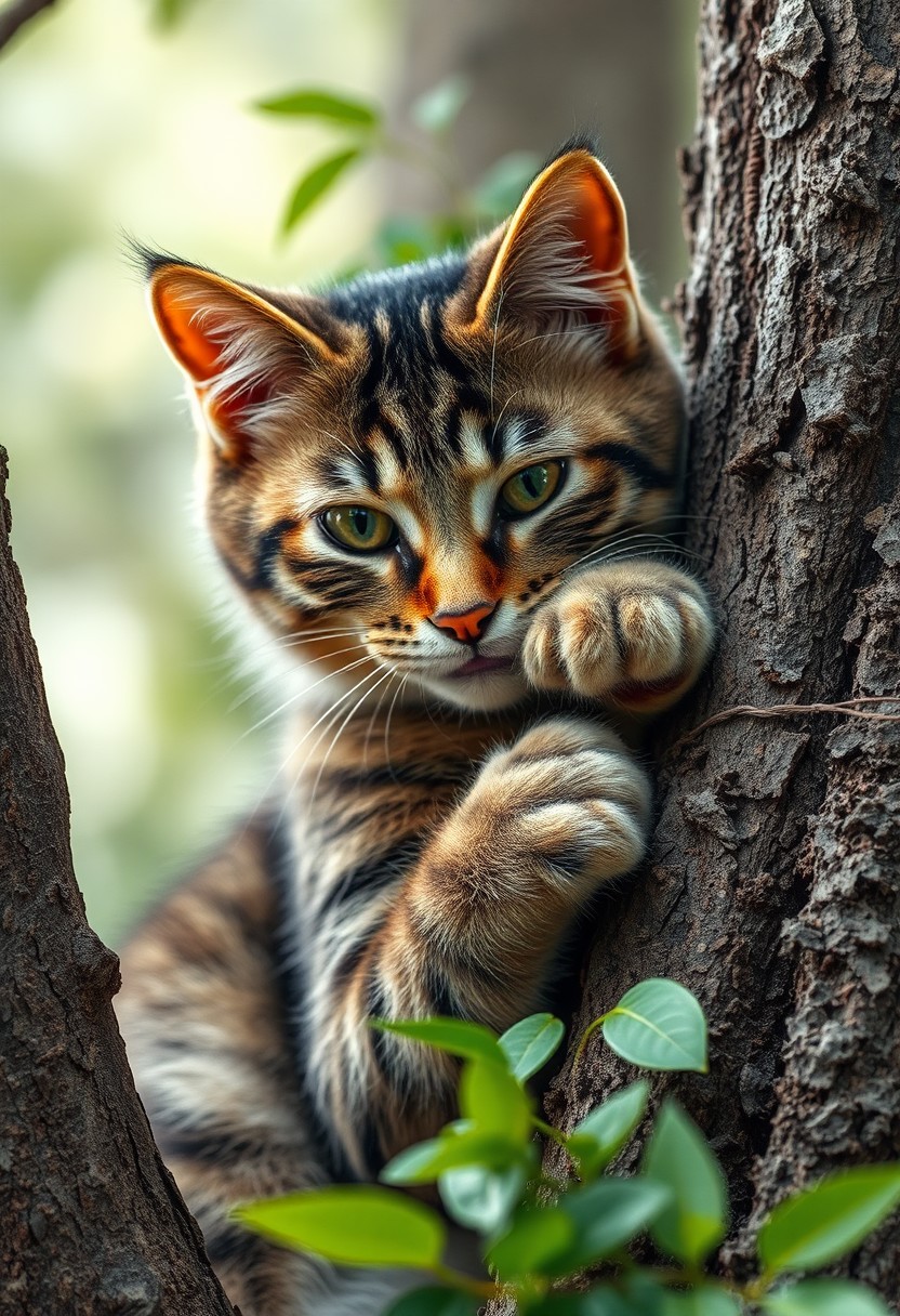CAT EAT LEAFE of tree, full-length, high detail, masterpiece , ultra quality, 4k, hd, hyper detailed, realistic, cute, wonderful