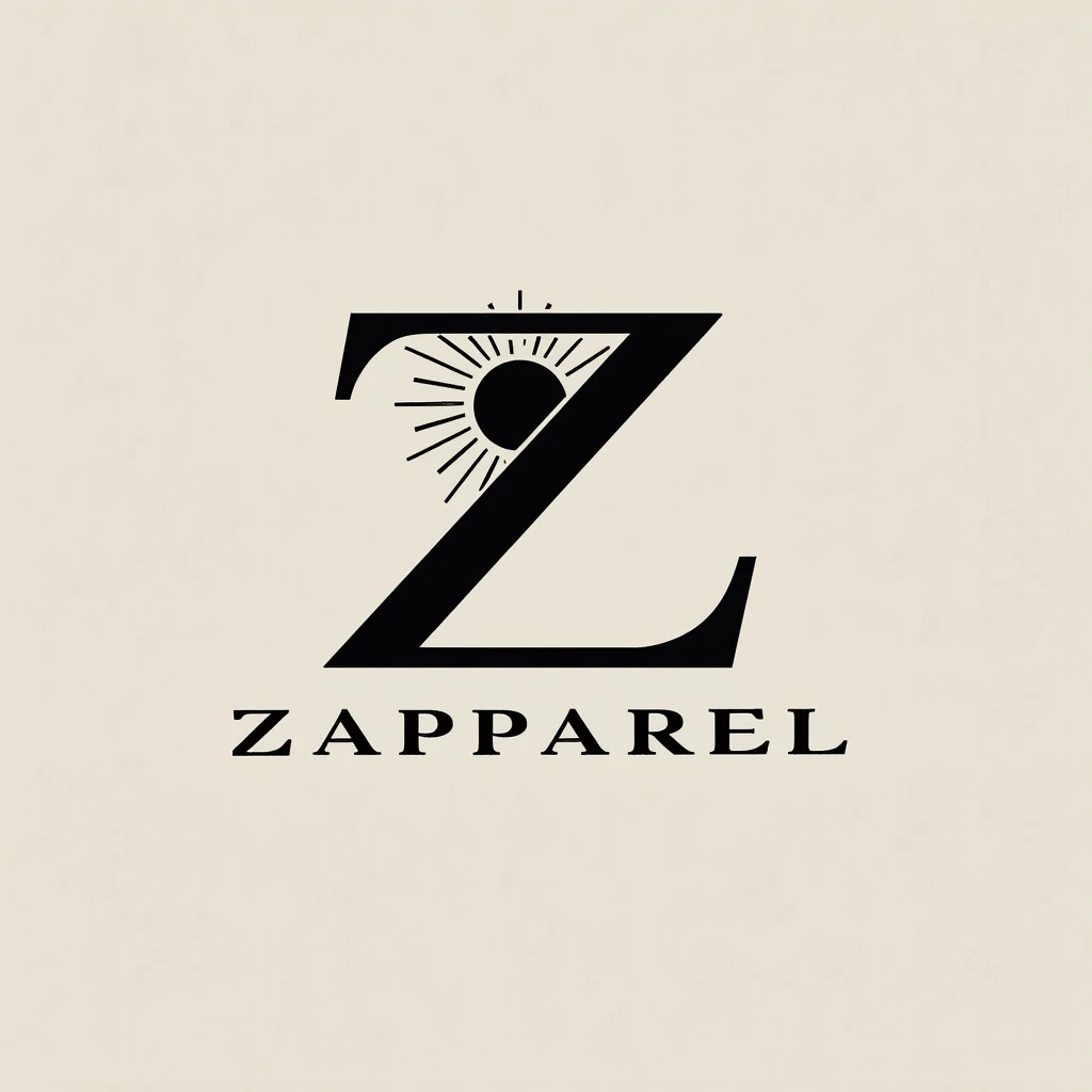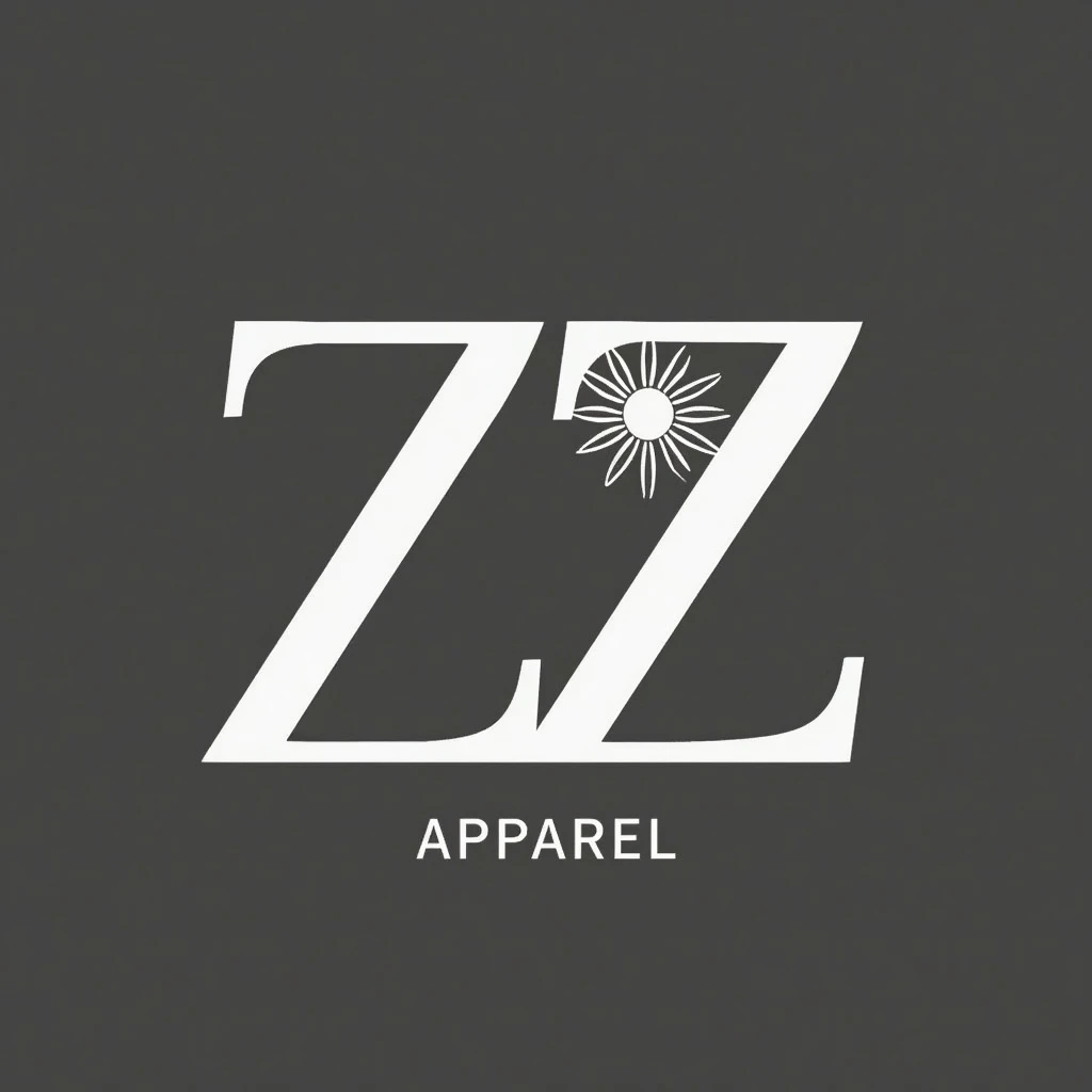 Create a logo for the 'ZZ Apparel' brand, representing the initials 'Z' and 'Z.' Incorporate a sun element into the design. The logo should be minimalistic, using only black and white. The sun should be subtly integrated, possibly as part of one of the letters or as a separate, simple graphic that complements the overall design. The style should be clean and modern, with a focus on elegance and simplicity.