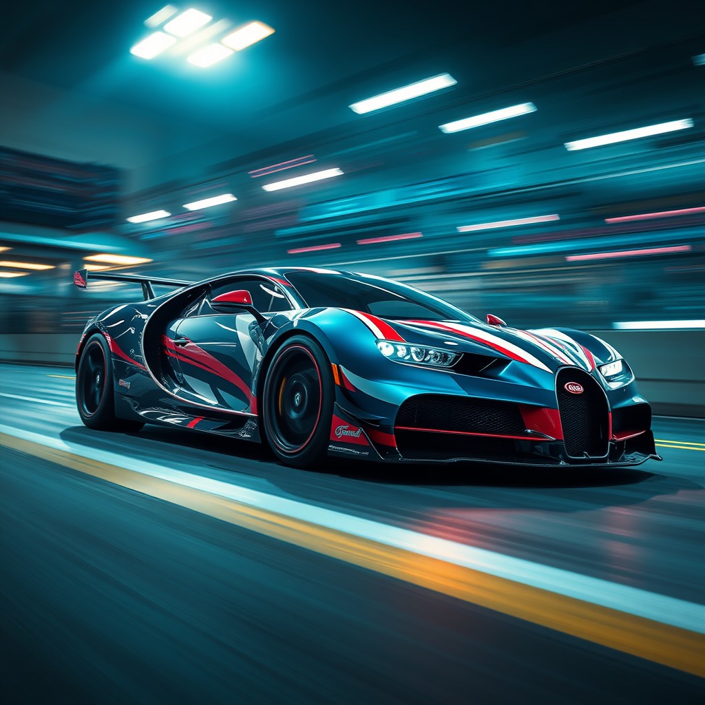 shot from side,it is Biochemical, racing stripes,bugatti,motion blur,going really fast masterpiece,deep focus,studio lighting, League of Legends Splash Art, hyperdetailed, arcadian, spotlight