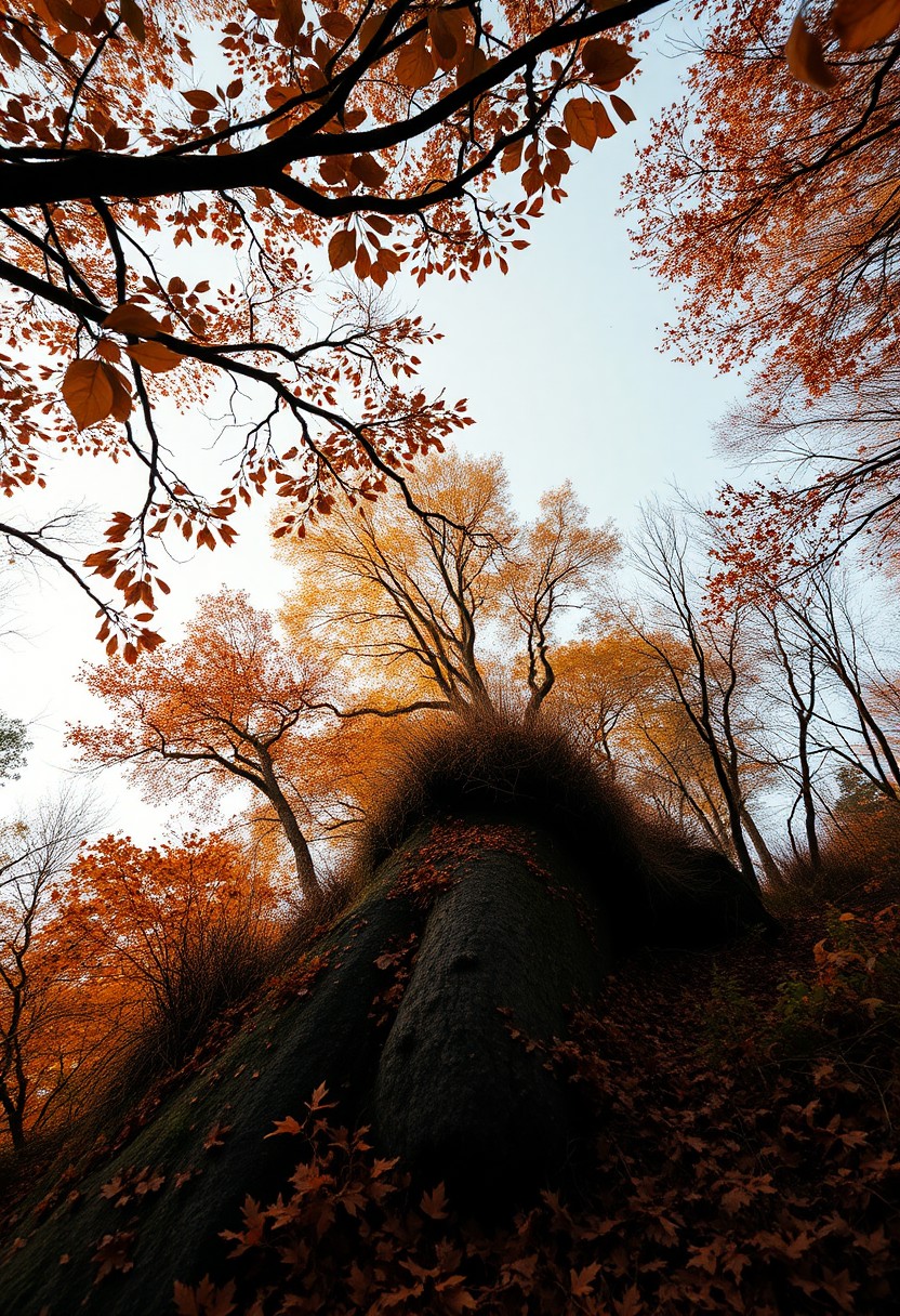 Award winning photo fall themed amazing composition, photo represening rise above, 8k, photographic, clear photo, perfect simple composition,cinematic color grading, muted colors, without noise, shot on Sony a7 III,